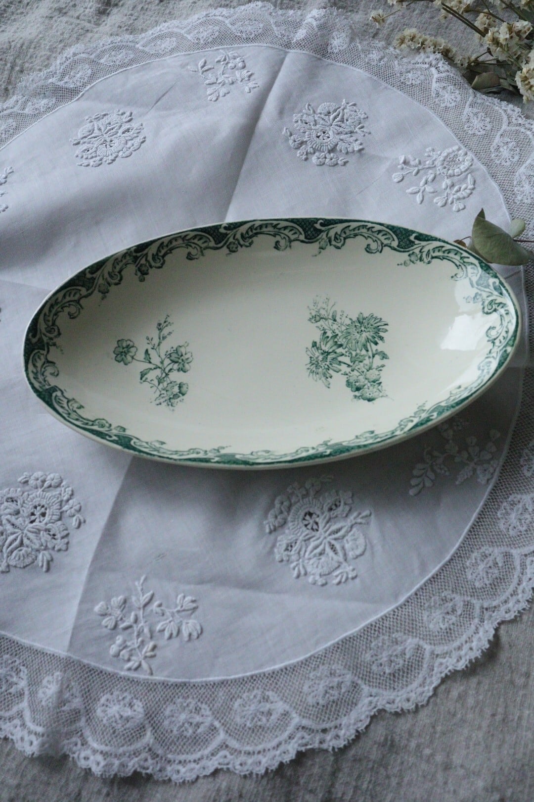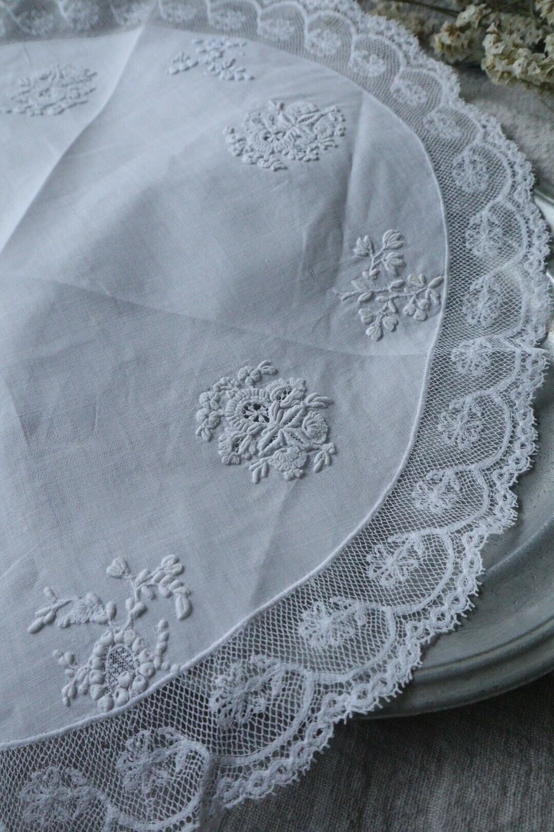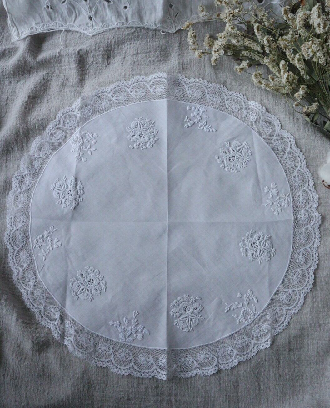 France製 43㎝ アンティーク刺繍ドイリー B633 ホワイト