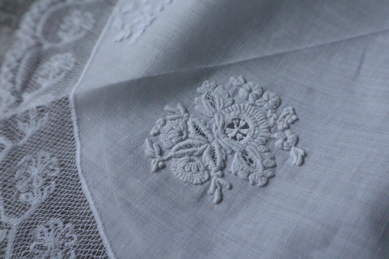 フラワーデザイン刺繍とレースの美しいレースドイリー。