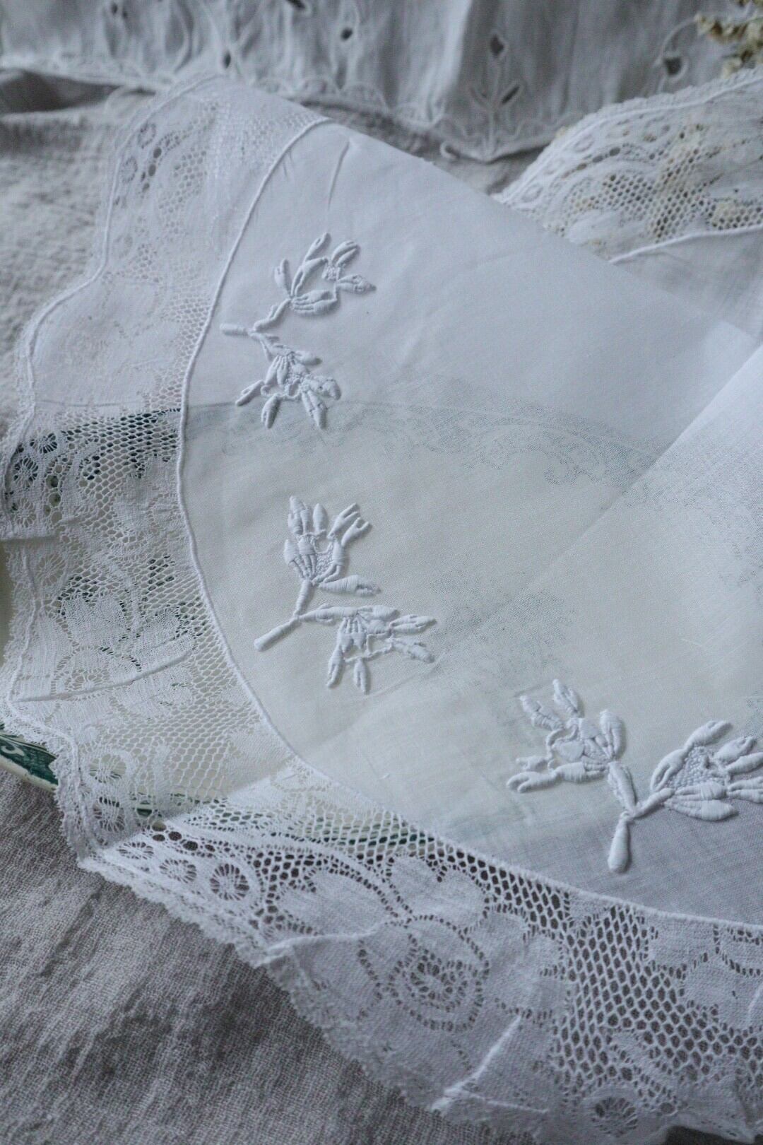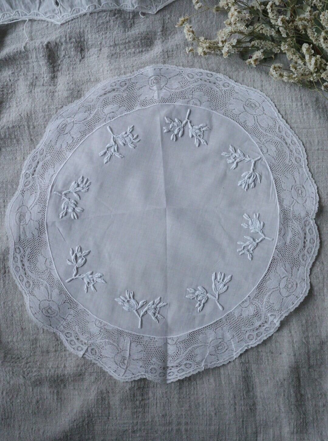 France製 40㎝ アンティーク刺繍ドイリー B634 ホワイト