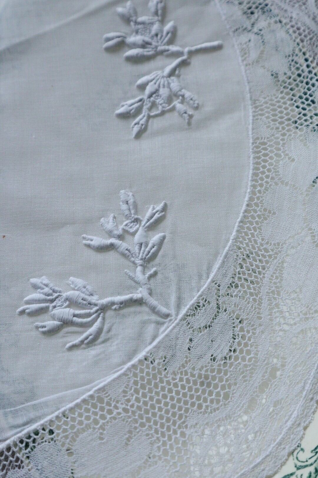 フラワーデザイン刺繍とレースの美しいレースドイリー。