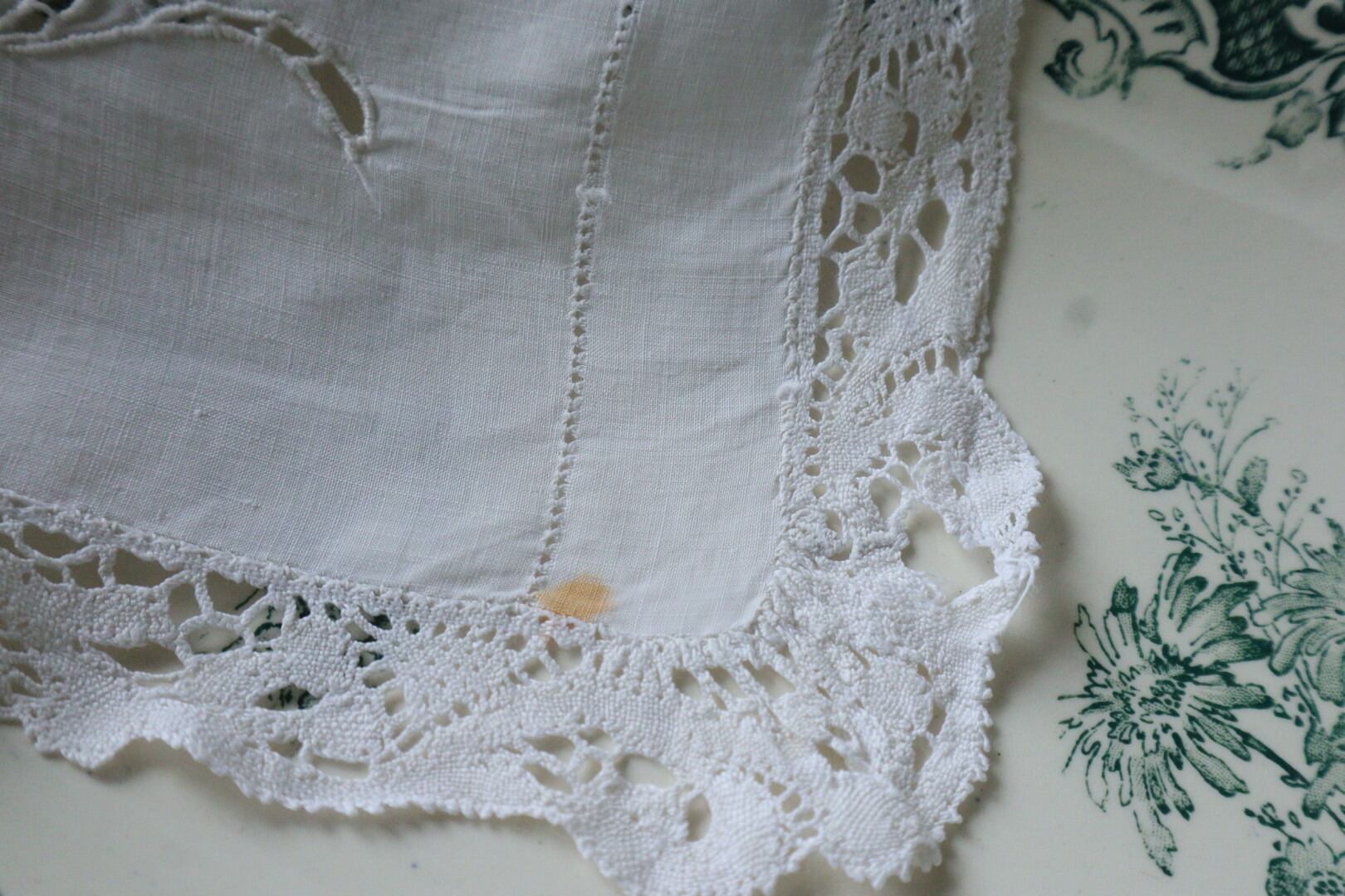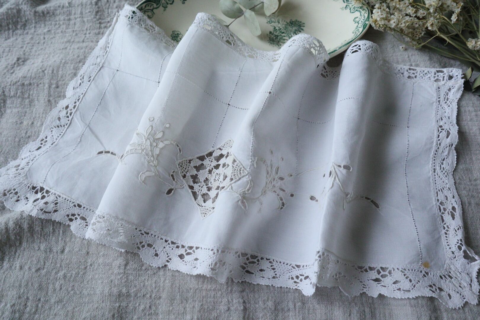 France製 21×55㎝ アンティーク テーブルセンター B627 ホワイト