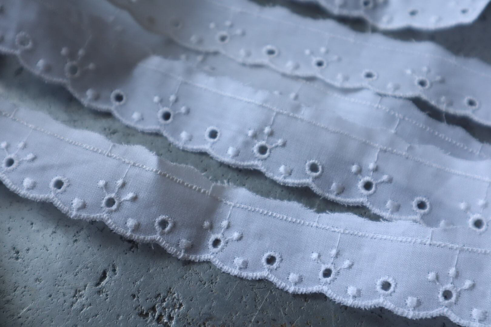 France製 1m ヴィンテージ刺繍レース B643 ホワイト
