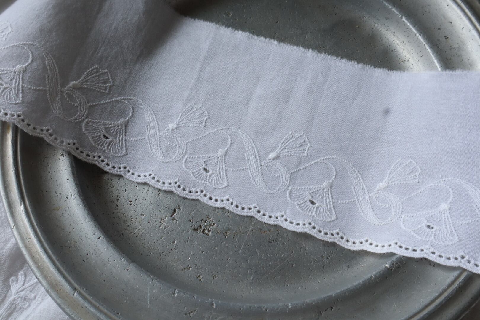 France製 55㎝ アンティーク刺繍レース B647 ホワイト