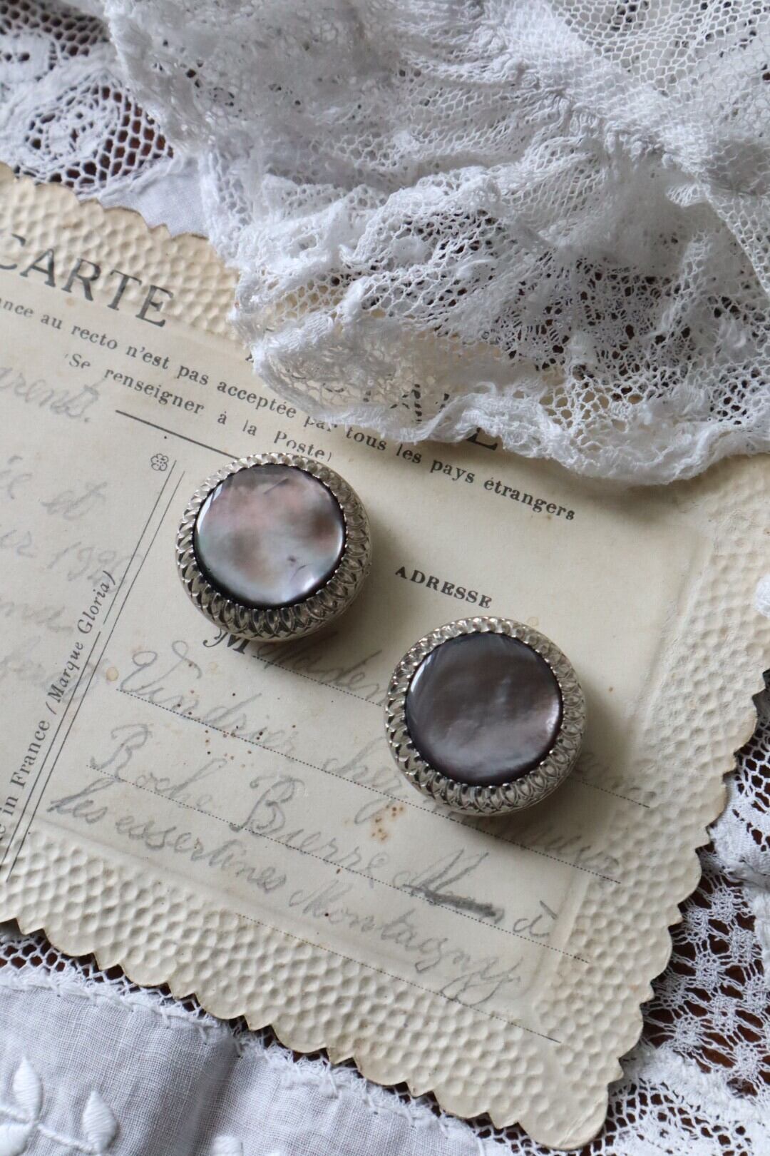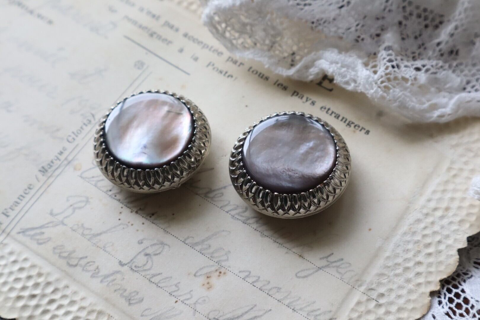 グレーマザーオブパールのボタン
