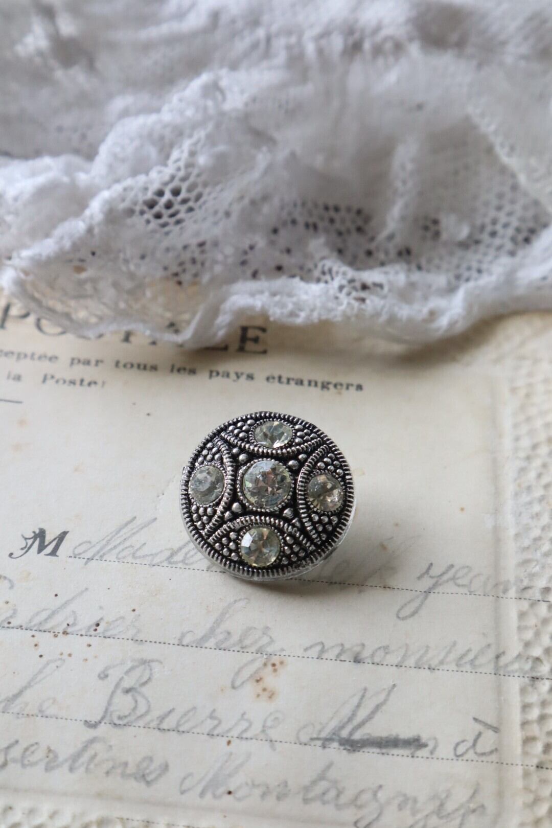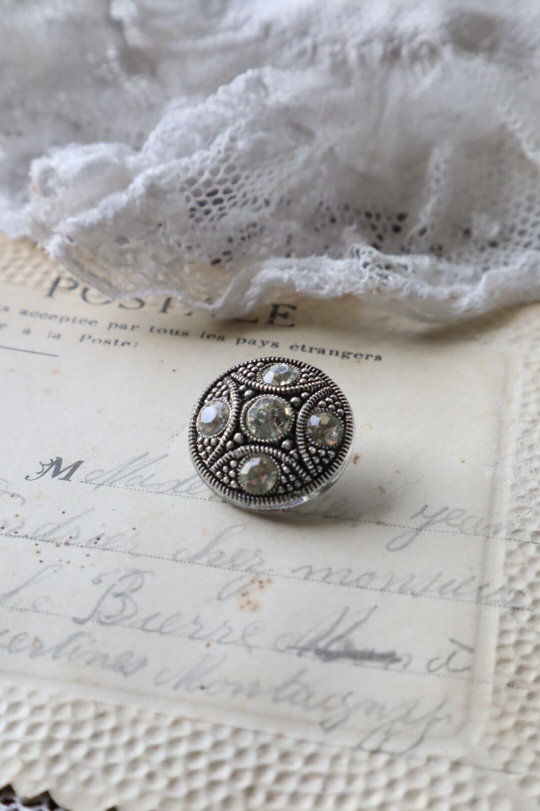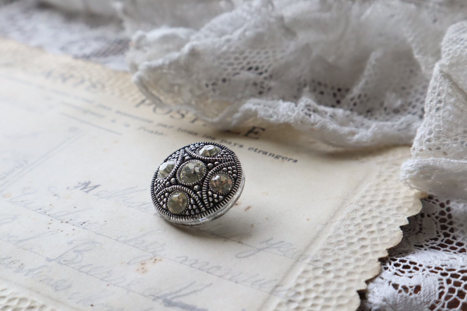 France製 18㎜ ヴィンテージガラスボタン A1419 シルバー