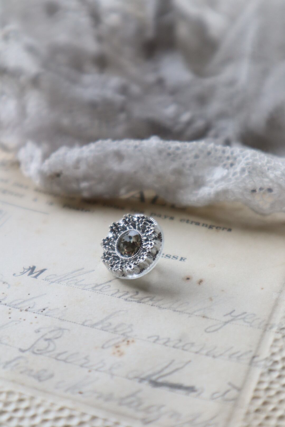 ビジュー飾りのあるガラスボタン