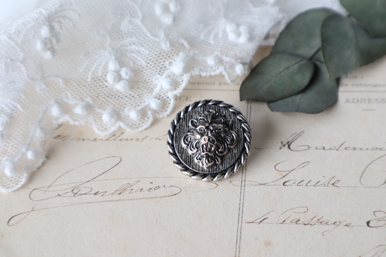 France製 22㎜ アンティークライオンボタン A1430 シルバー