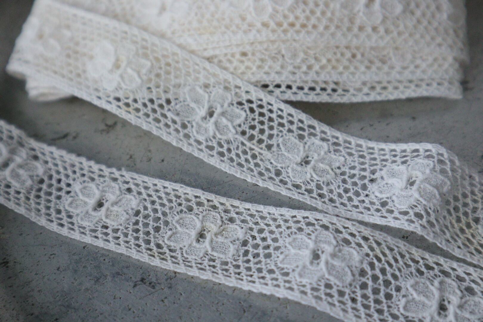 France製 50㎝ アンティーク花柄レース C810 ホワイト