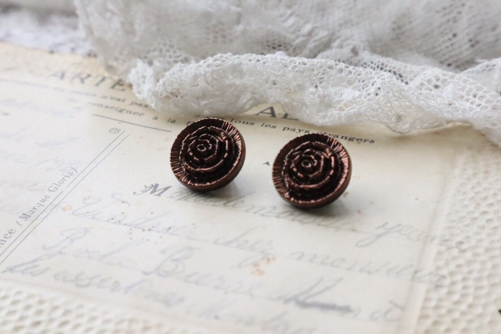 薔薇モチーフのガラスボタン