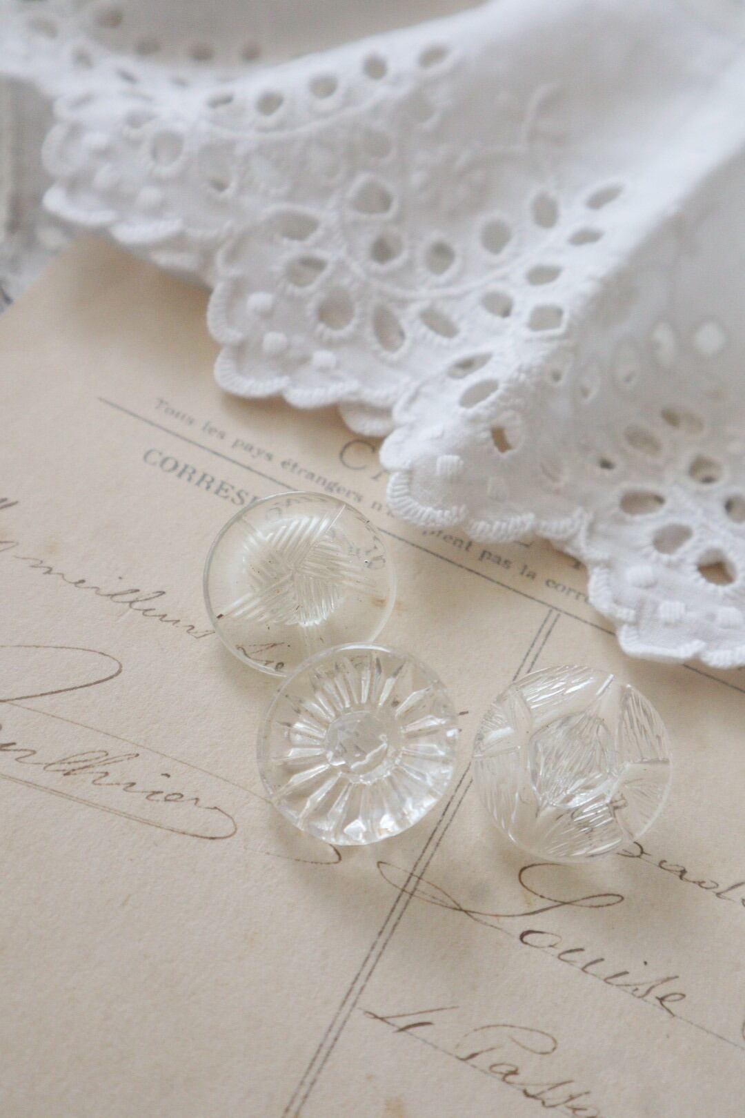 France製 3個セット アンティークガラスボタン A1441 クリア