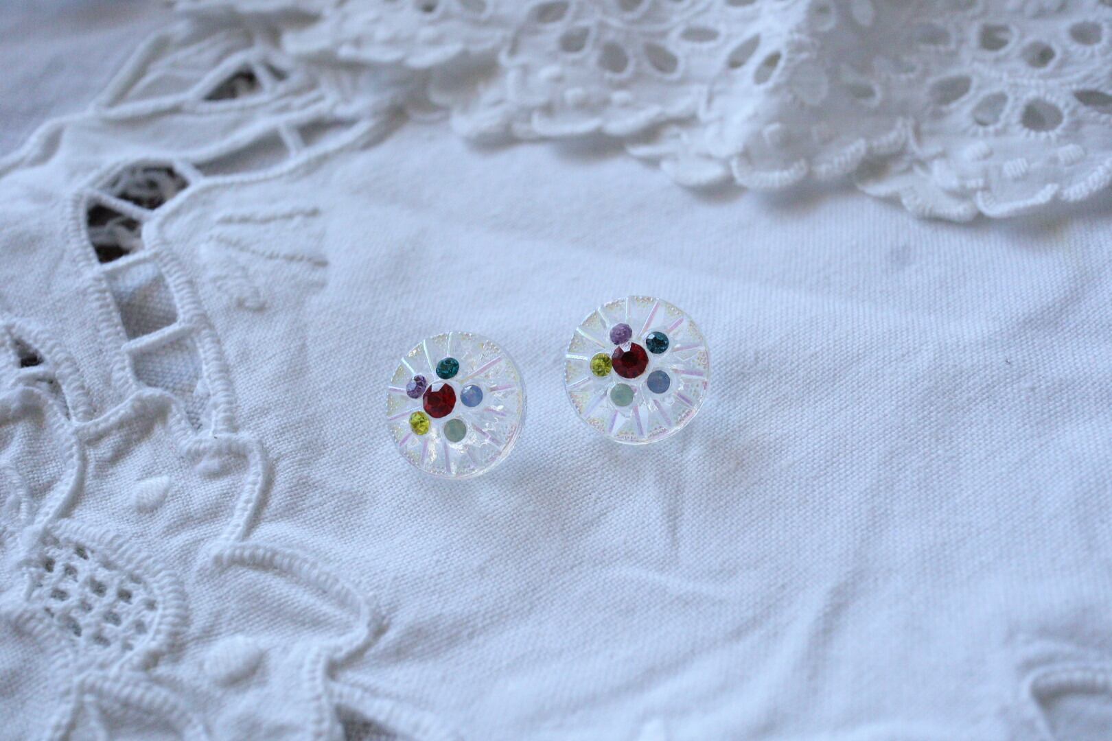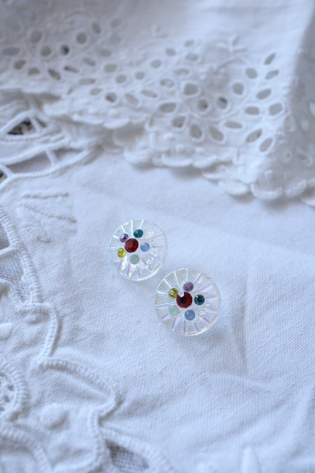 France製 13㎜ アンティークボタン ガラス製 A1449 オーロラクリア