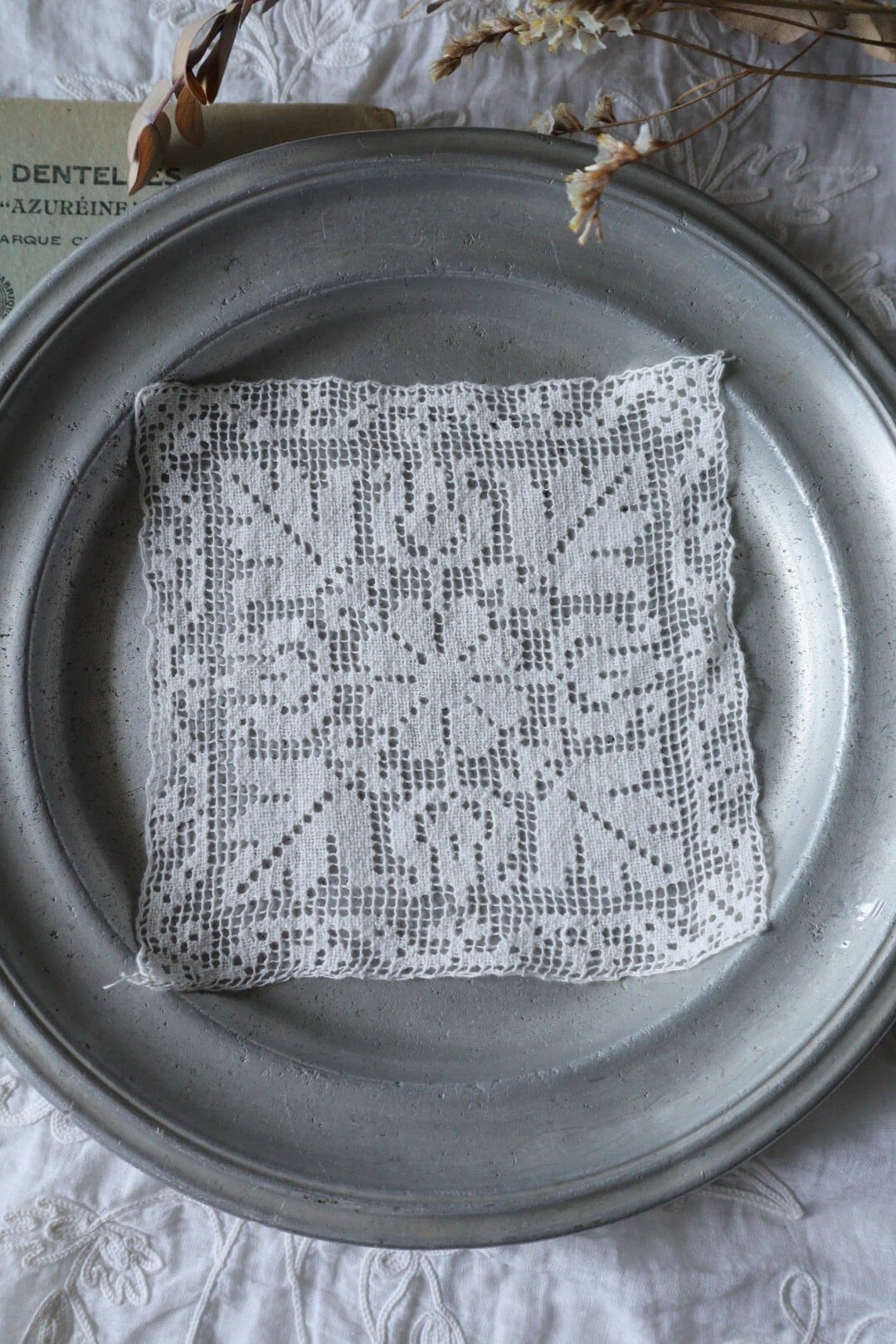 France製 13㎝ アンティークフィレレースモチーフ B676 オフホワイト