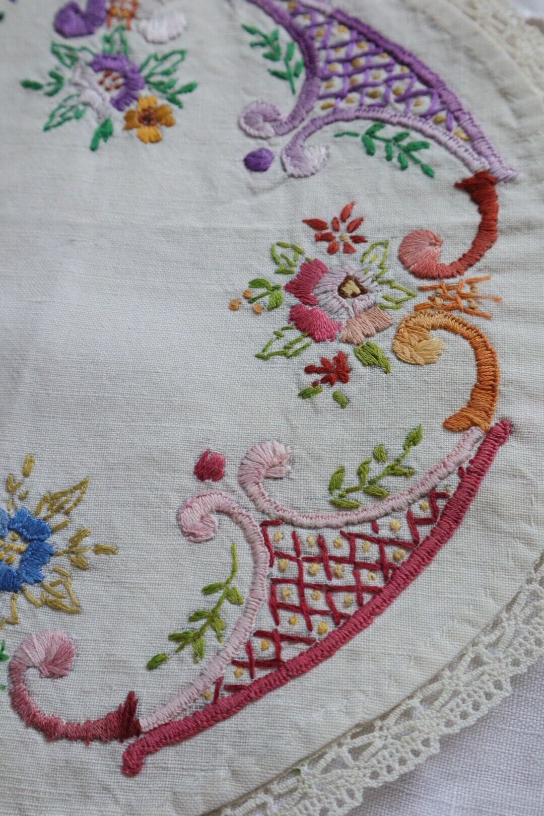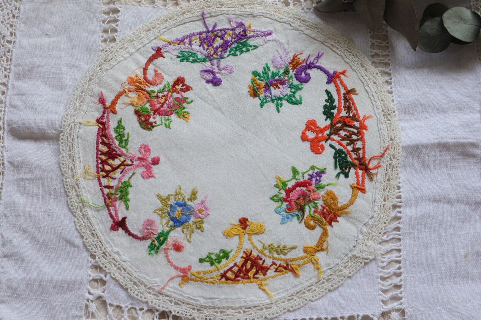 France製 25㎝ アンティーク刺繍ドイリー B687