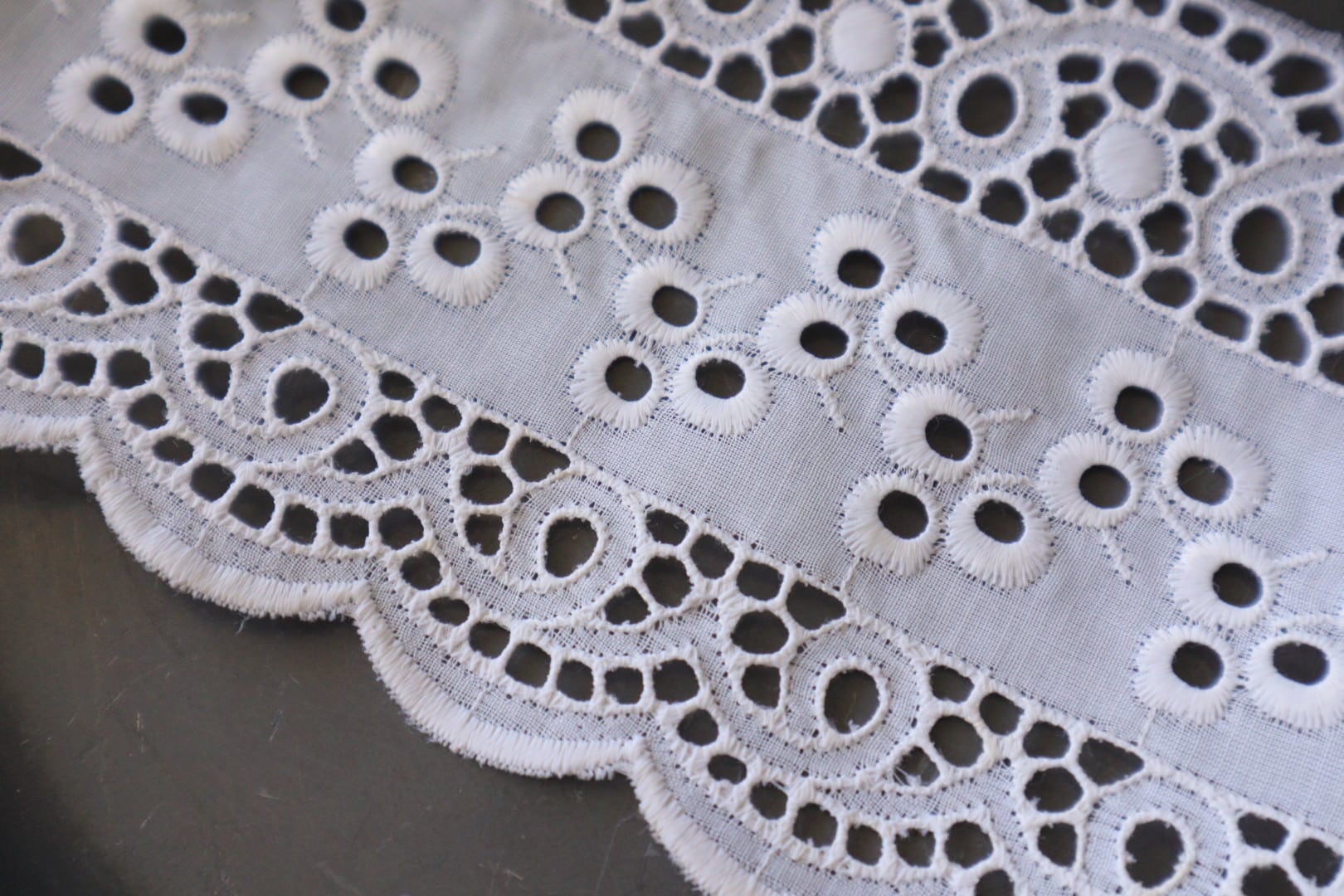 France製 70㎝ ヴィンテージ刺繍レース C837 ホワイト