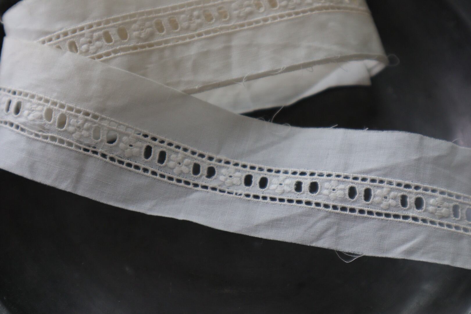 France製 1m アンティークカットワーク刺繍レース C850 オフホワイト