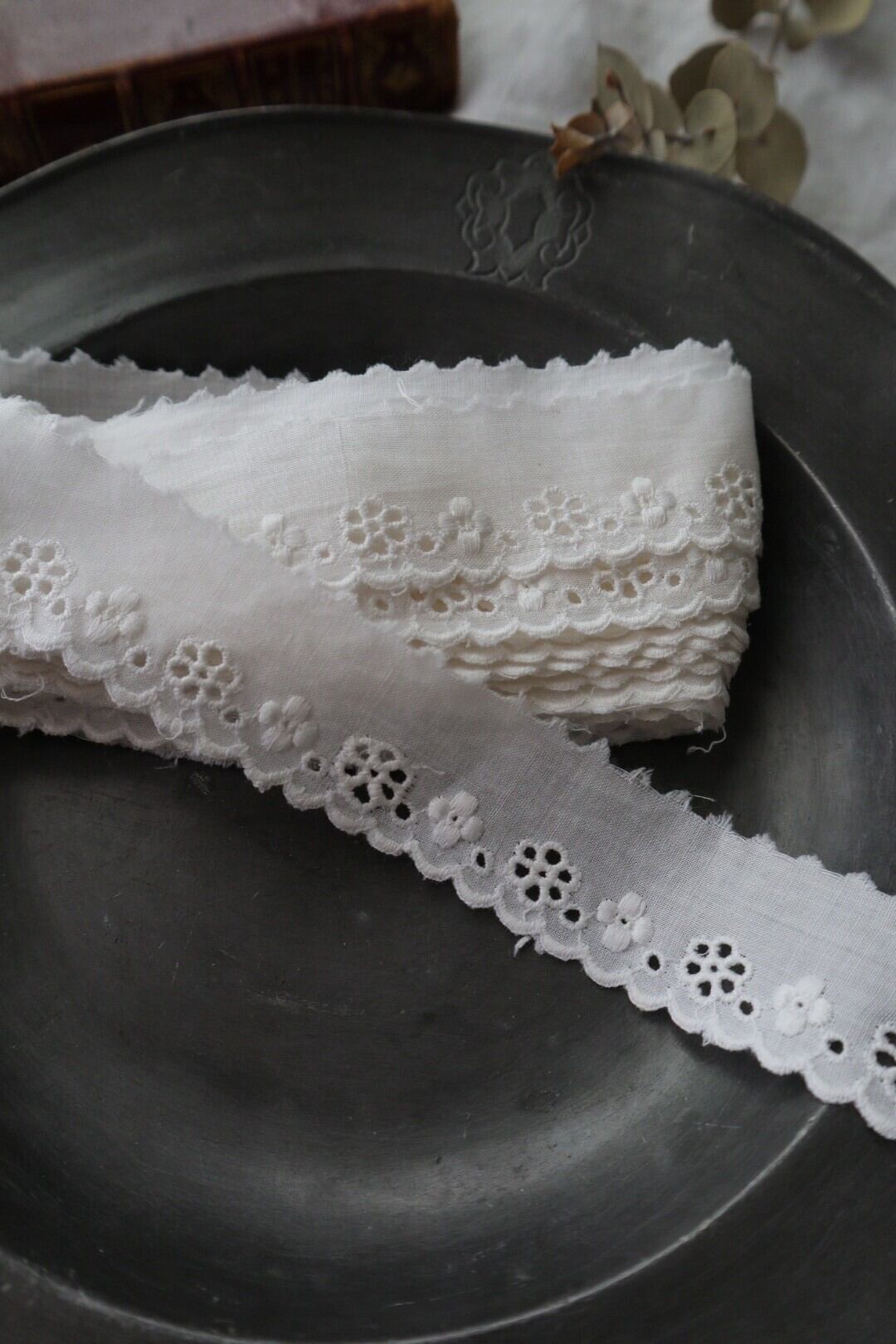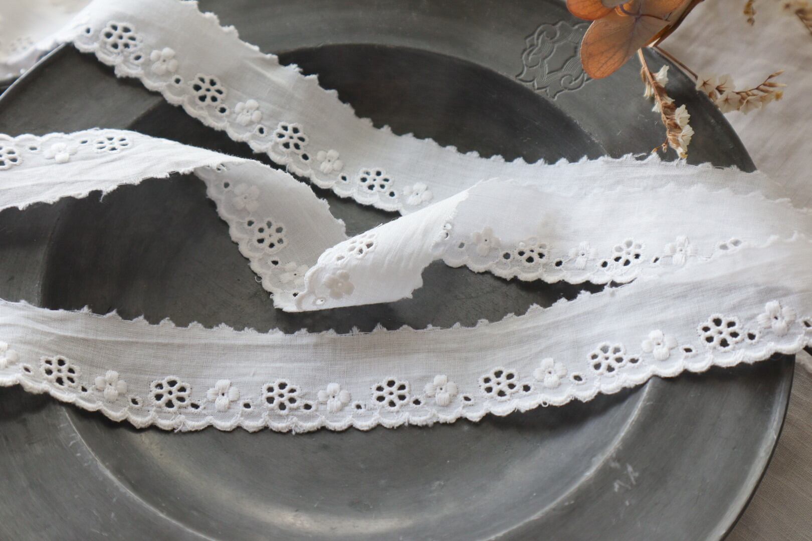 France製 50㎝ ヴィンテージ刺繍レース C857 ホワイト