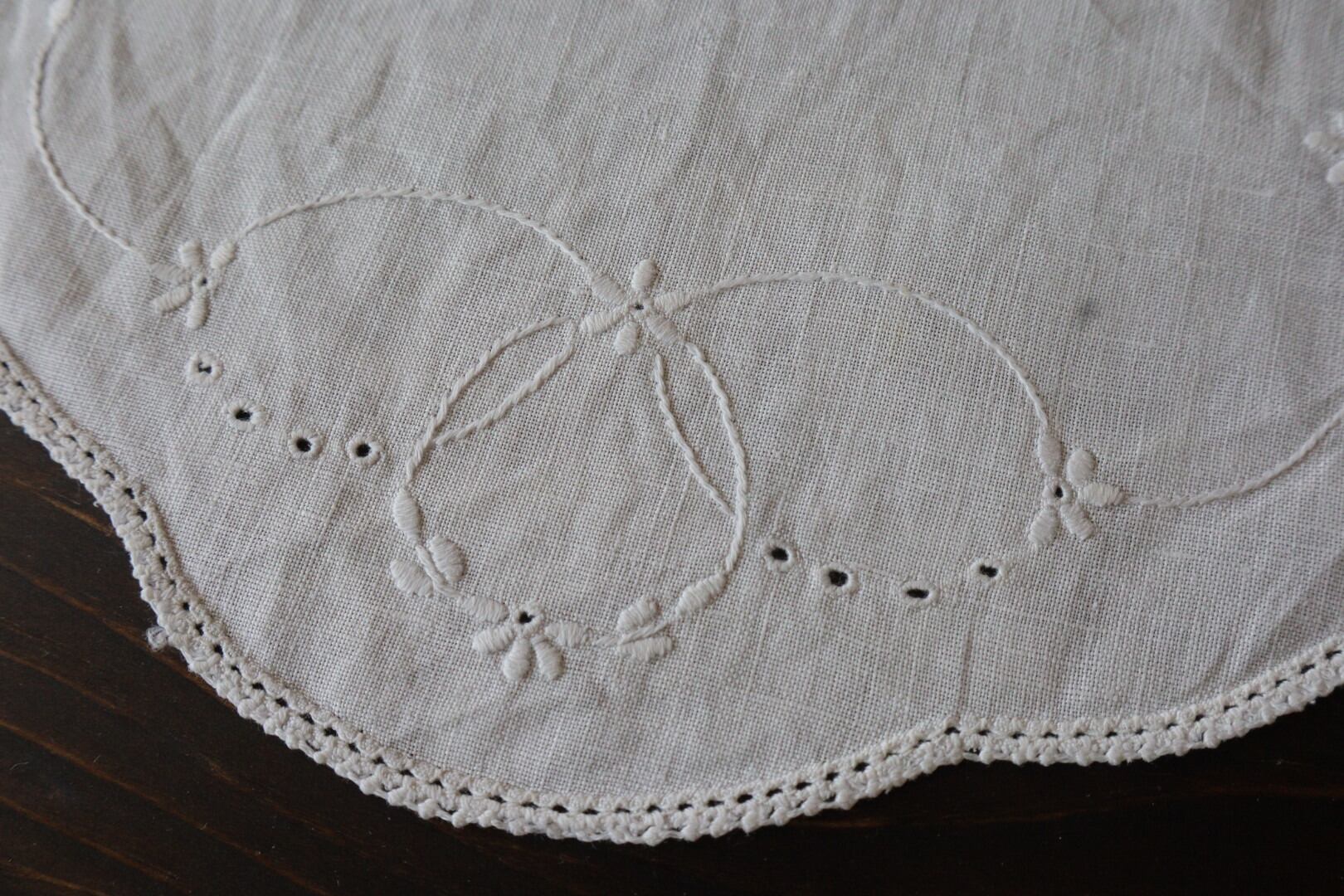 France製 19㎝ アンティーク刺繍ドイリー B716 オフホワイト
