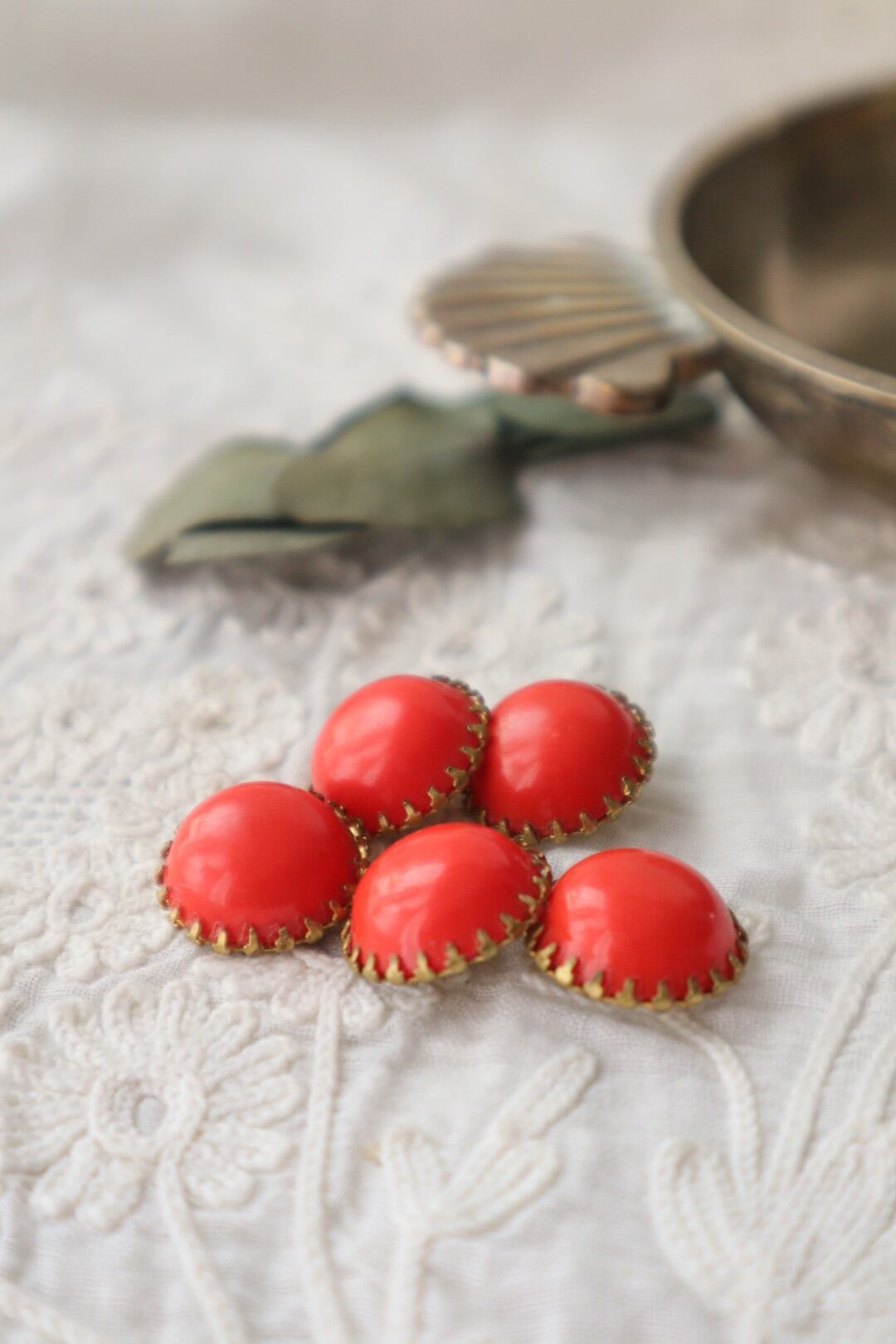France製 16㎜ アンティークボタン A1554 レッド