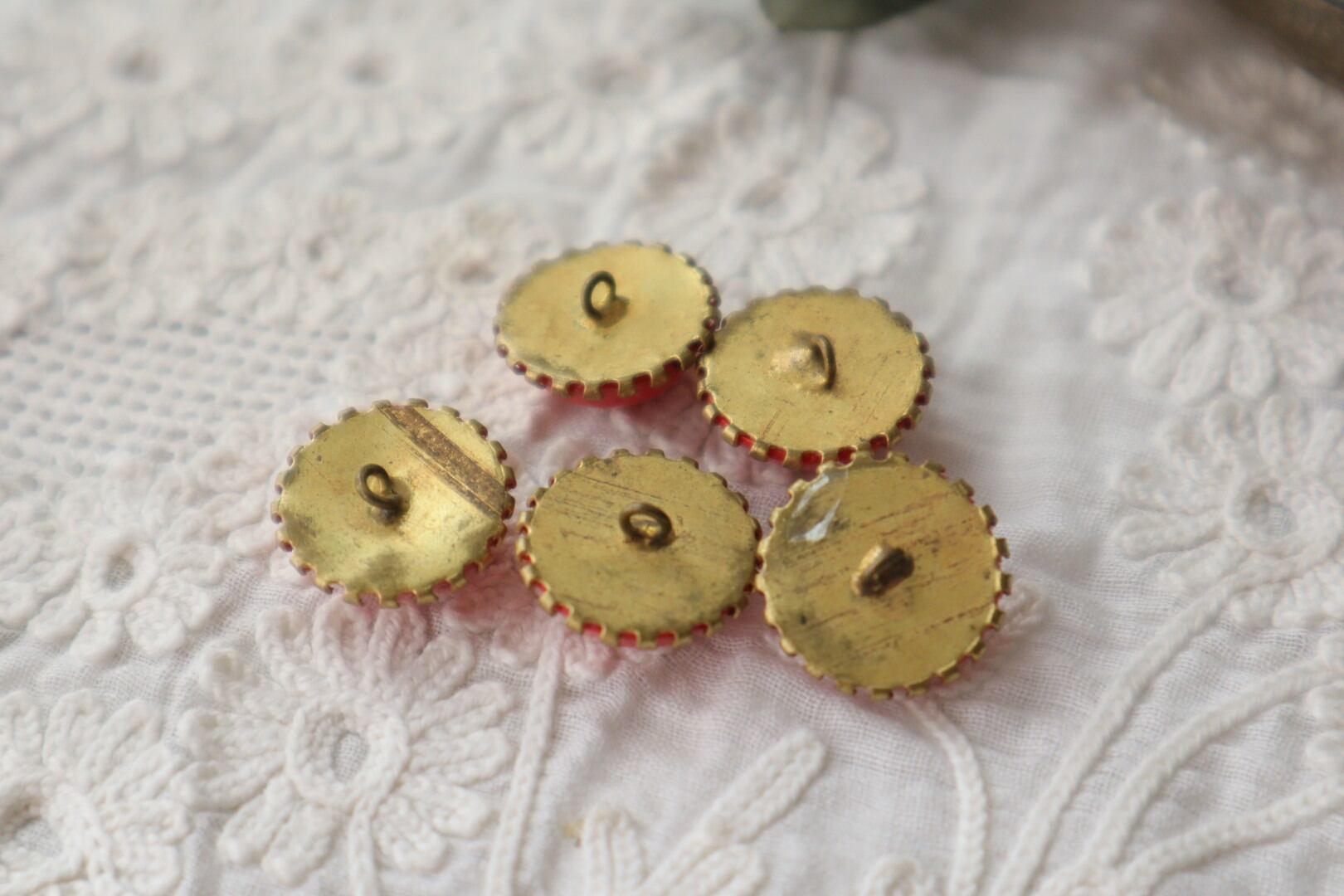 金属製の台座が風合い豊かなボタン
