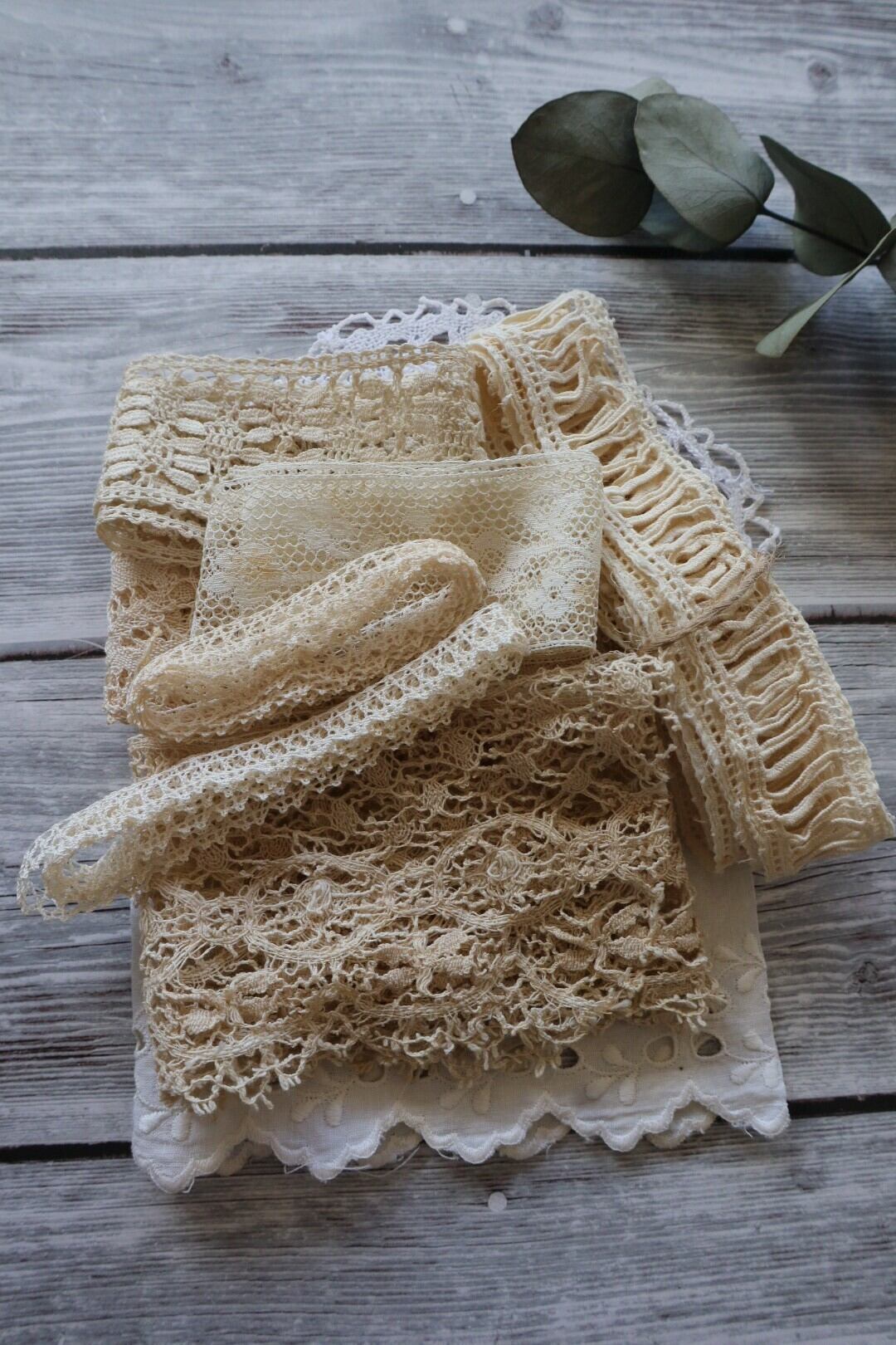 ハギレや細めレースが入っています。