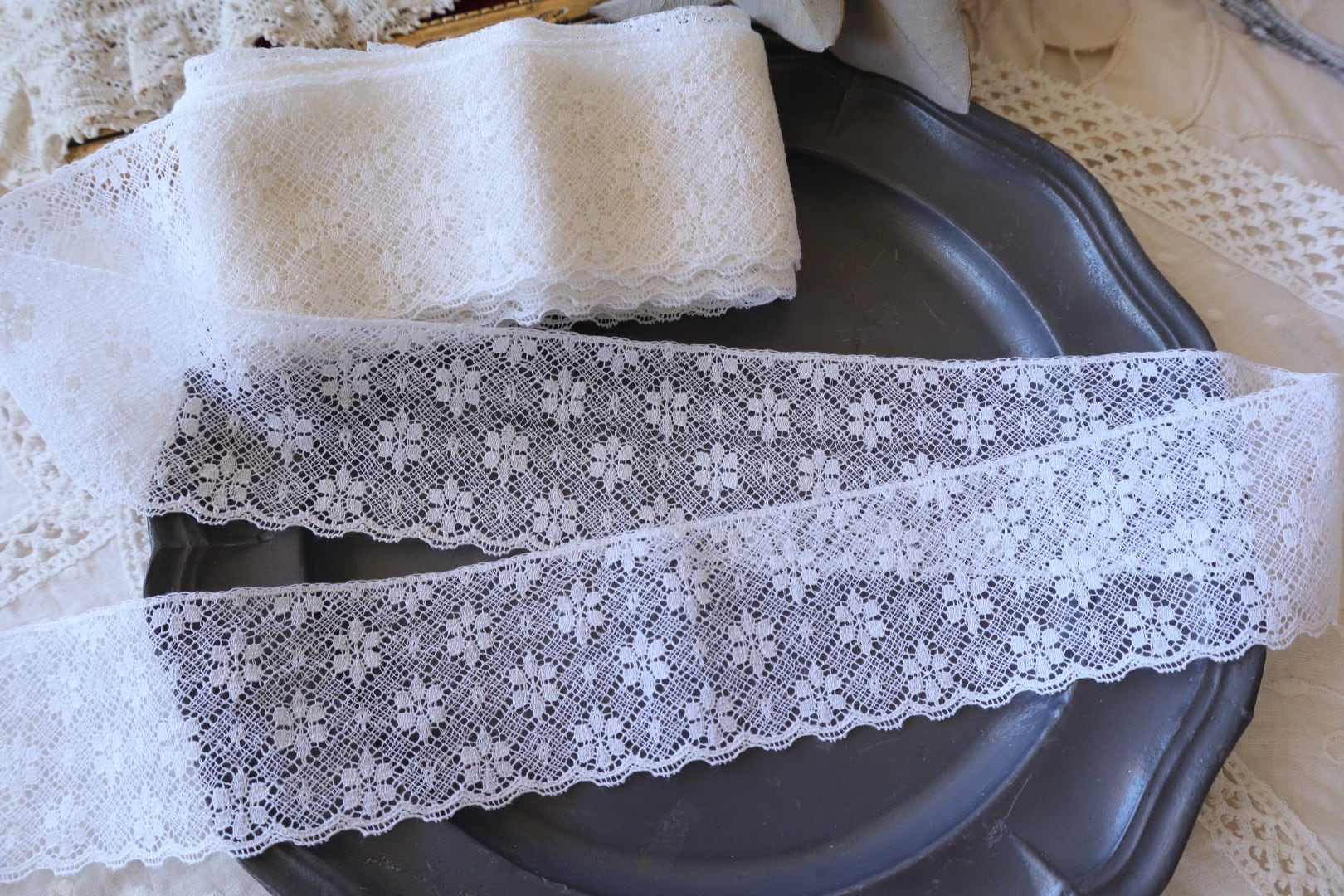France製 60㎝ アンティーク花柄レース C884 ホワイト