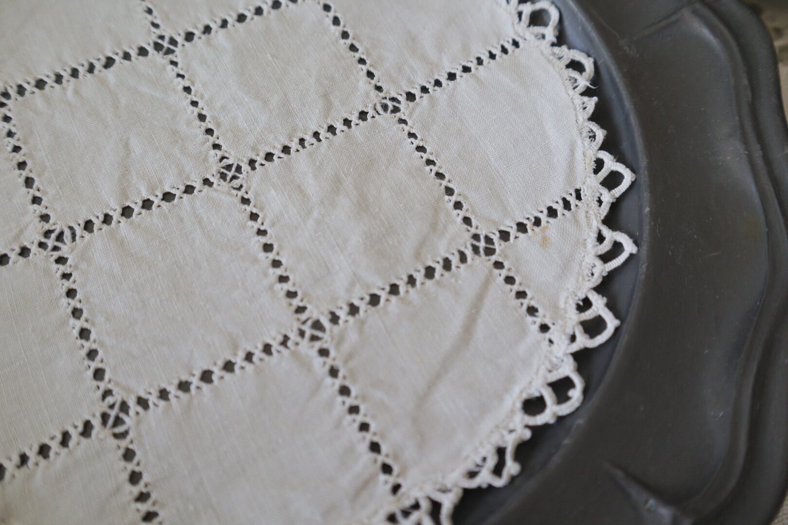 France製 16㎝ アンティークレースドイリー B735 ホワイト
