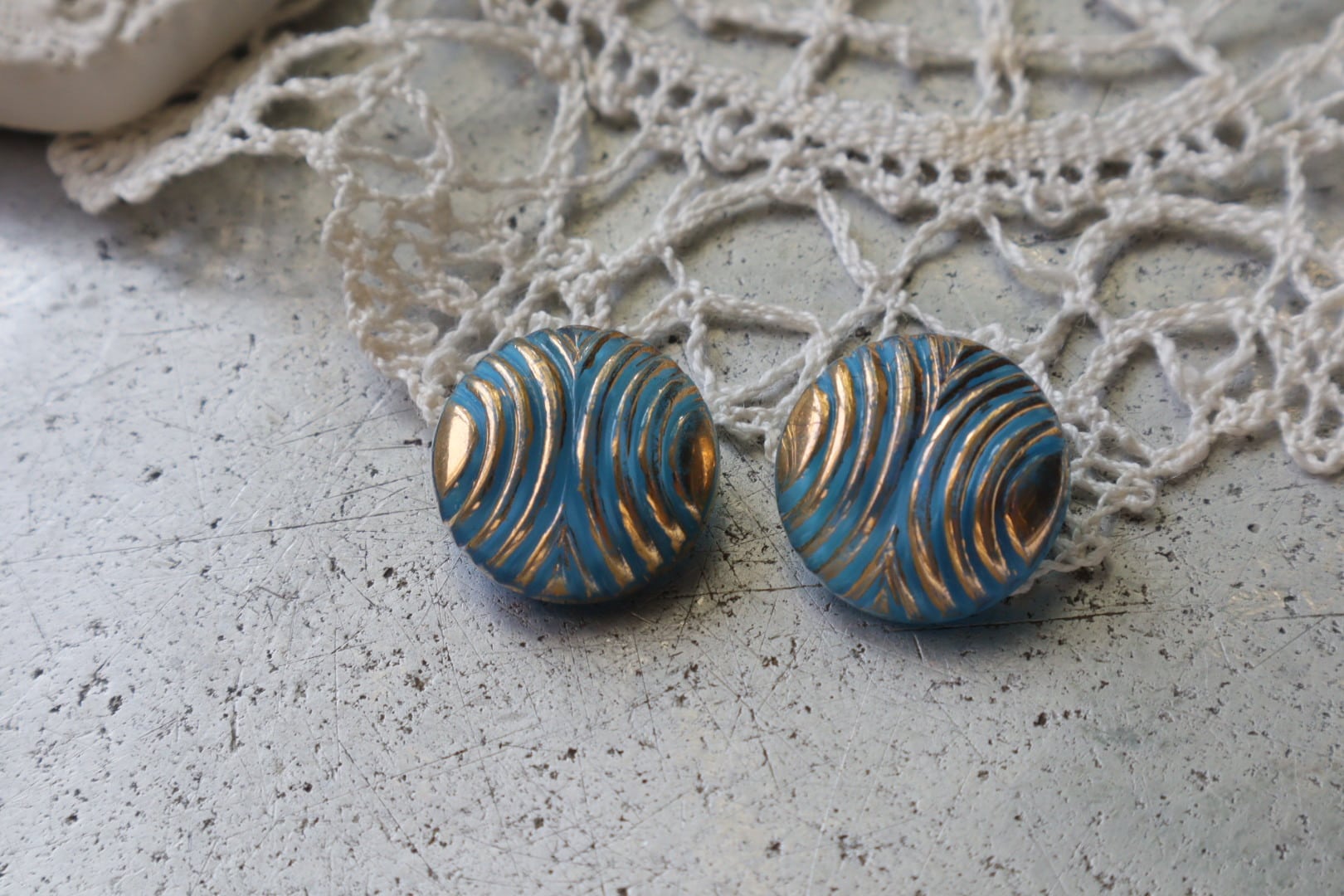 France製 18㎜ ヴィンテージガラスボタン A1587 ブルー