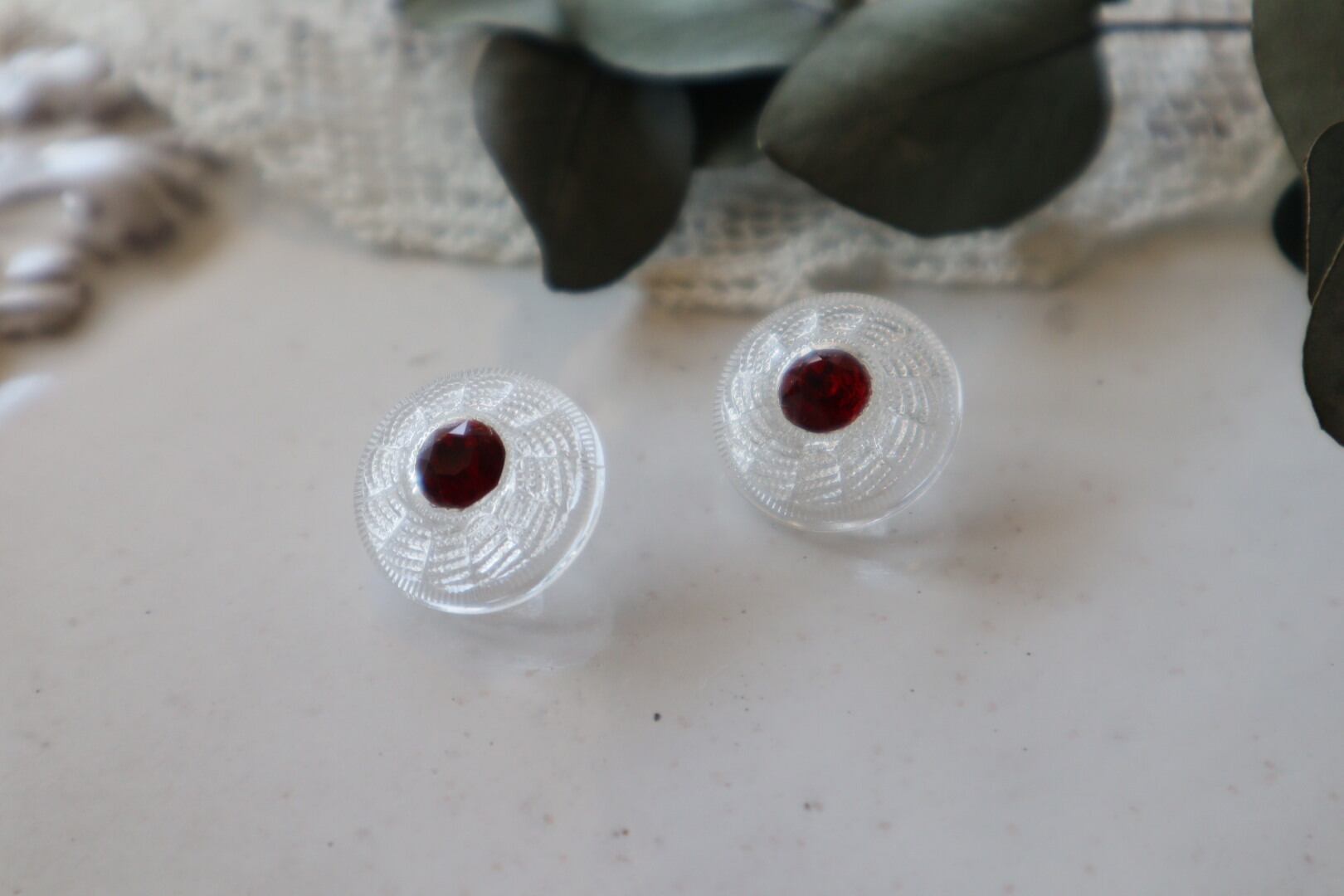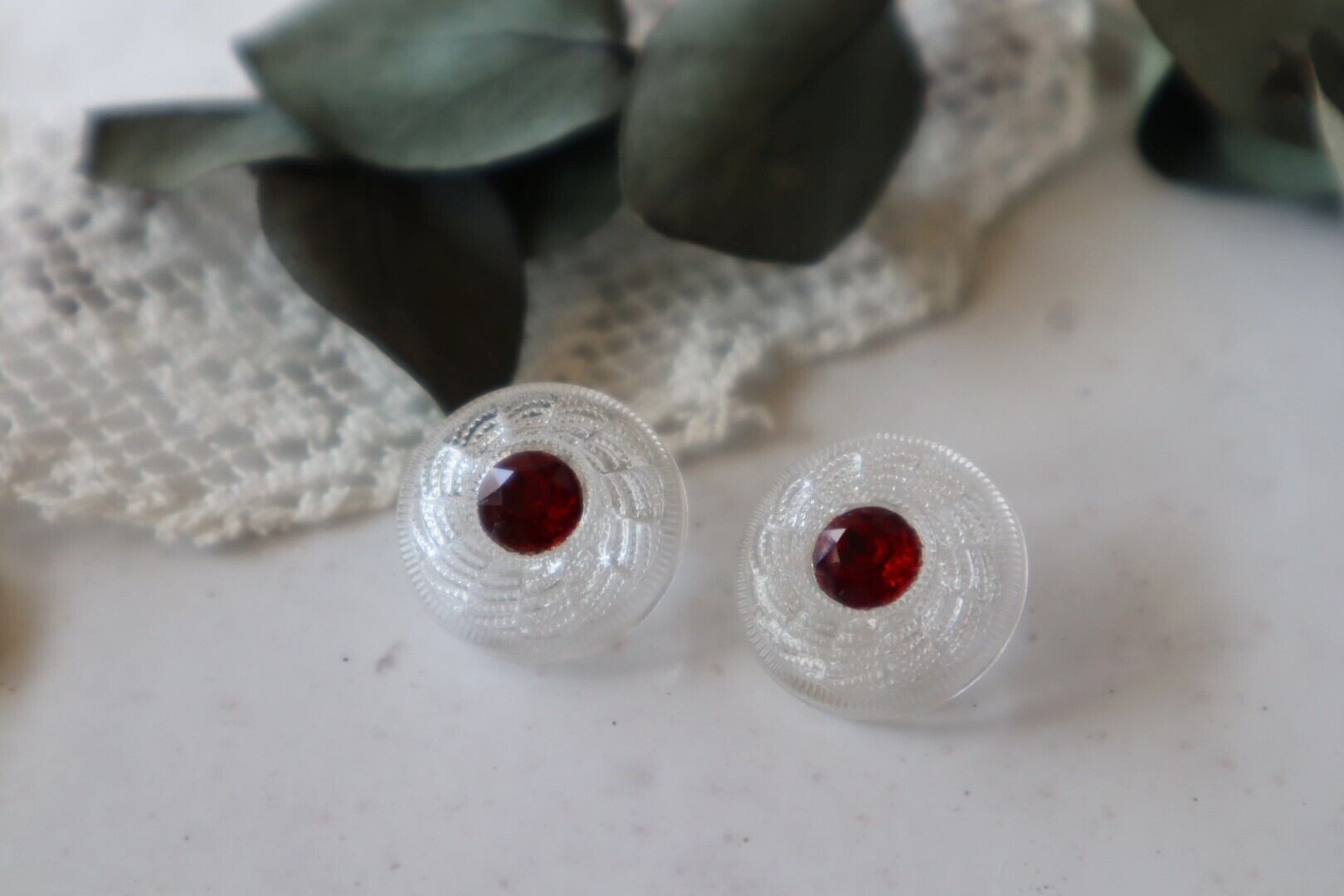 クリアなガラスボタンに上品なビジュー飾りのある品