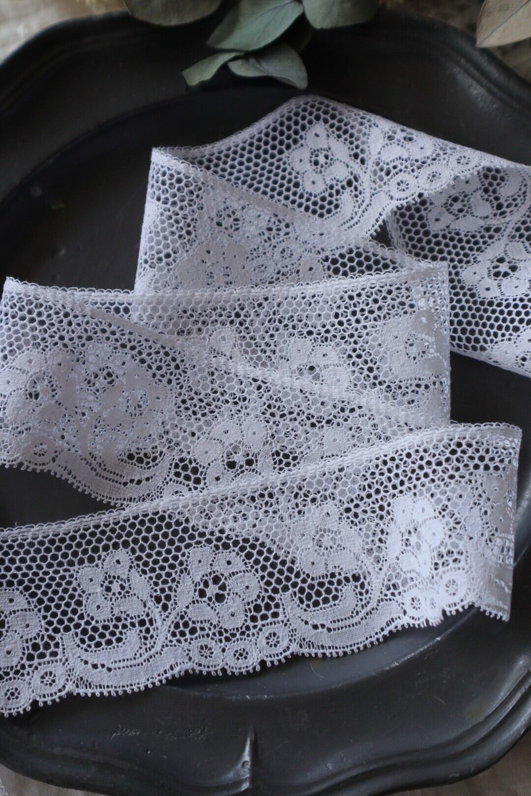 France製 60㎝ アンティーク花模様レース C919 ホワイト
