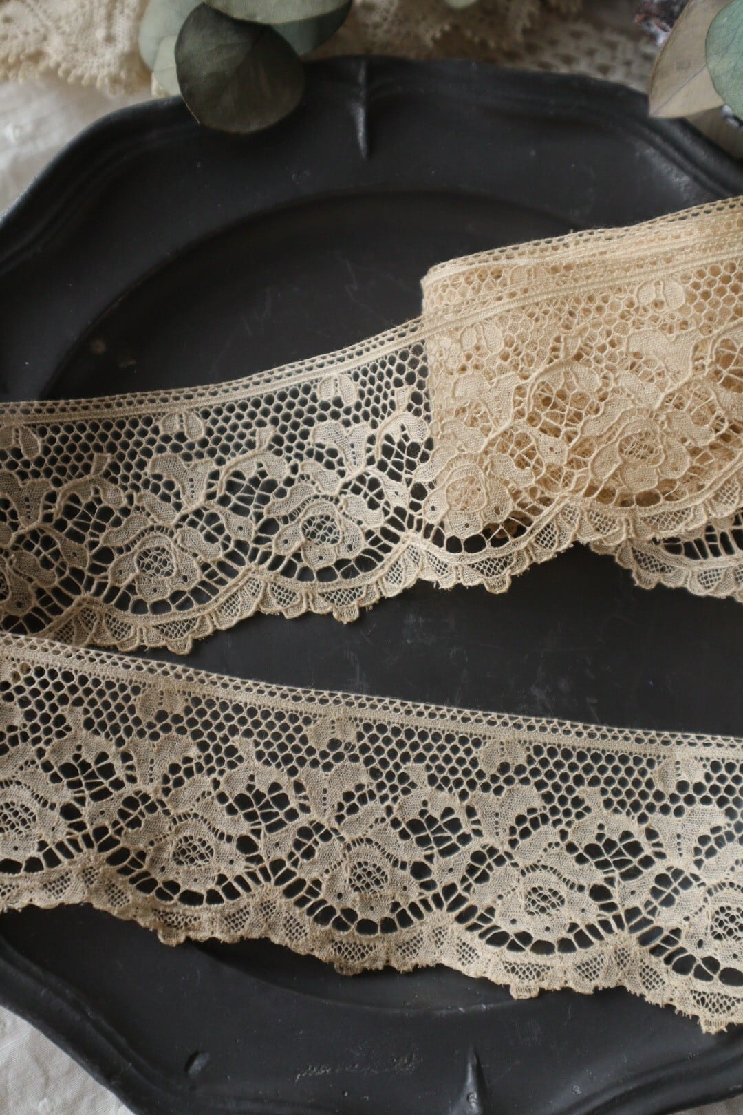 France製 50㎝ アンティーク花柄レース C922 ベージュ
