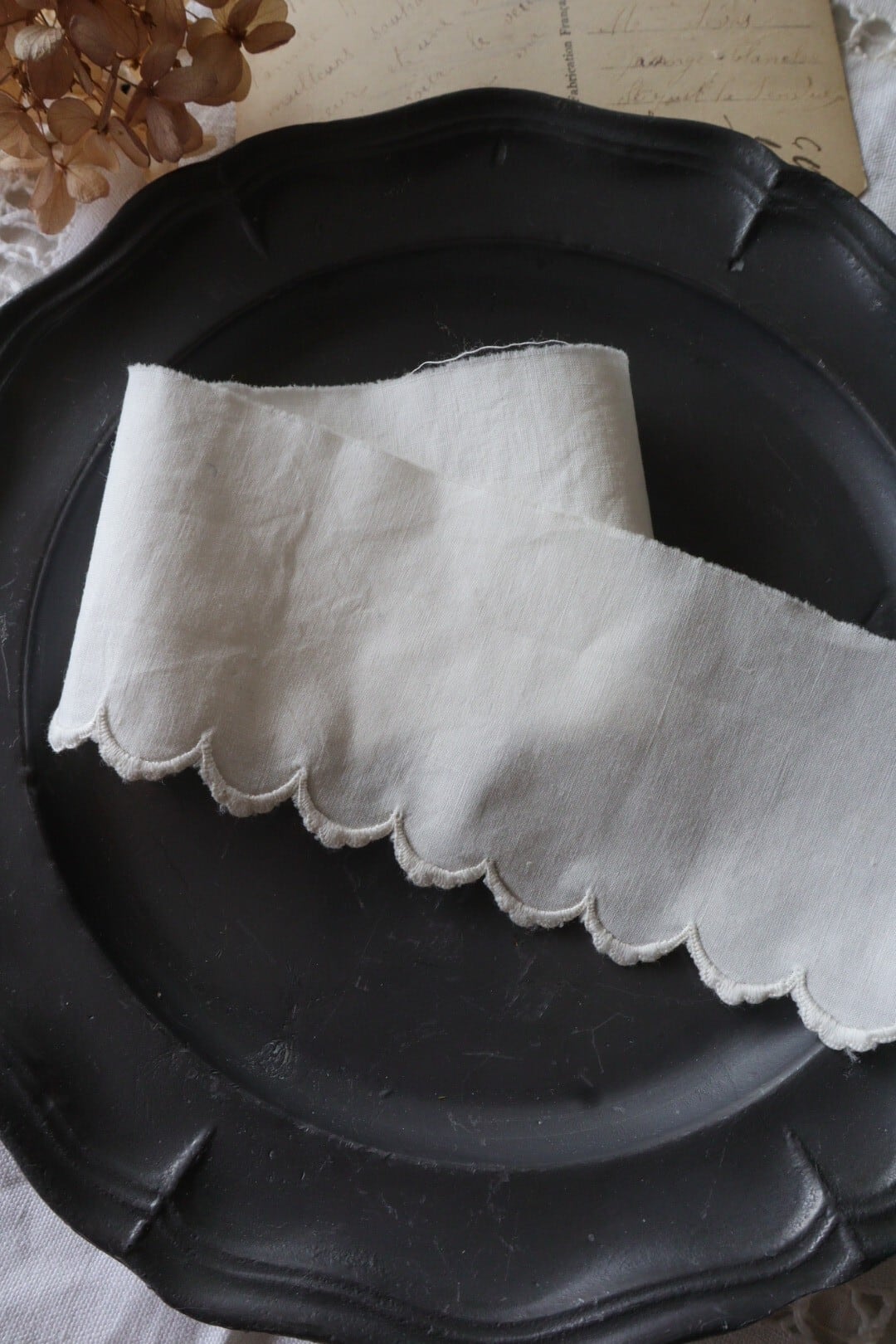 France製 42㎝ アンティーク刺繍レース C926 ホワイト