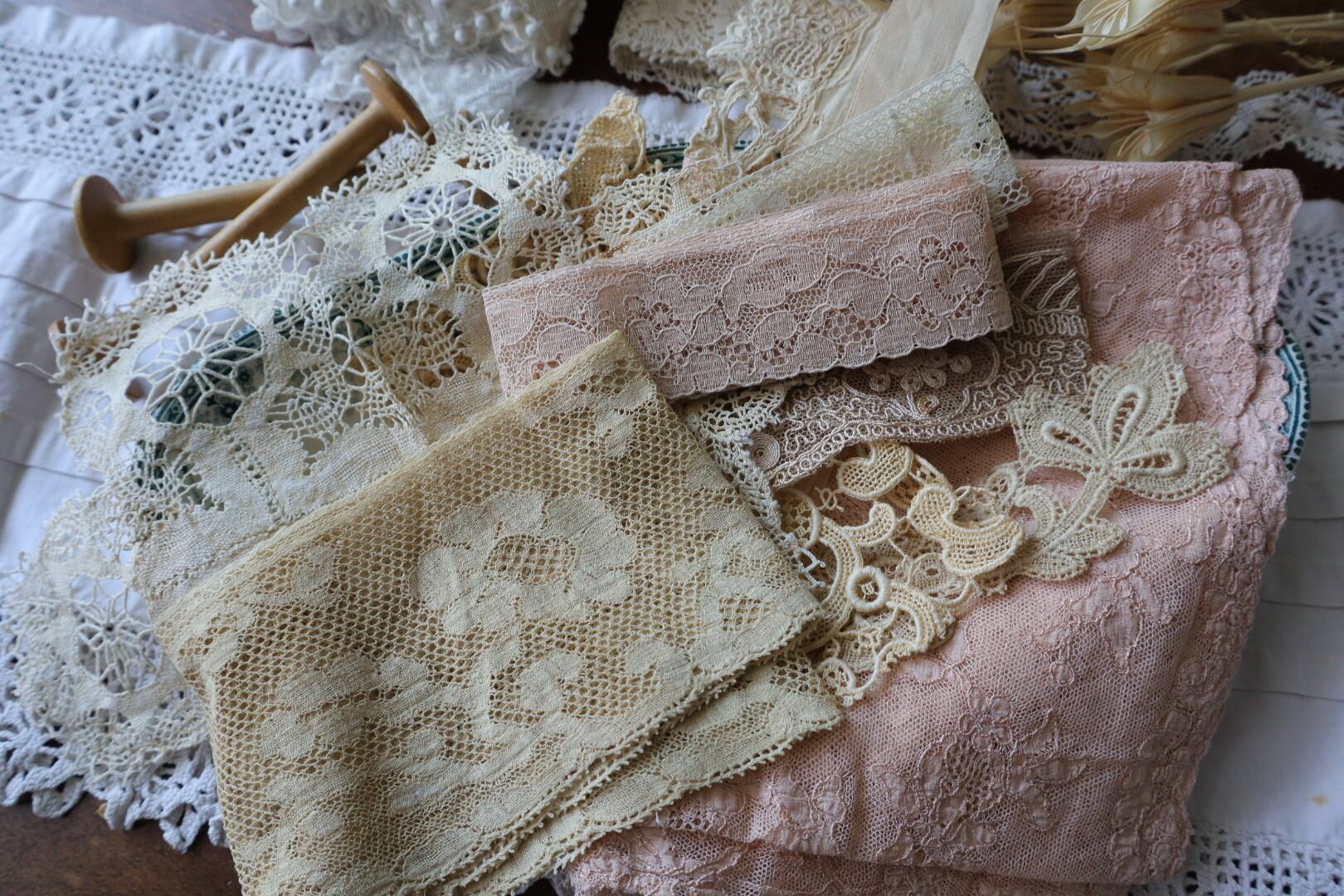 ドイリー、ヴァレンシエンヌレース各種、モチーフなどをセレクトしました。