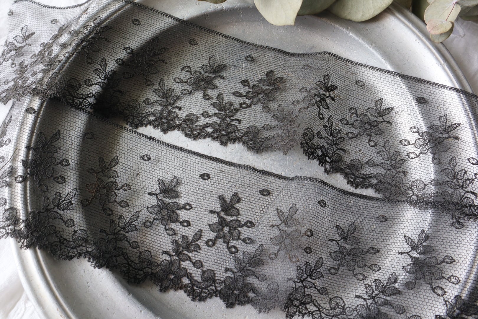 France製 35㎝ アンティーク黒レース C735 ブラック