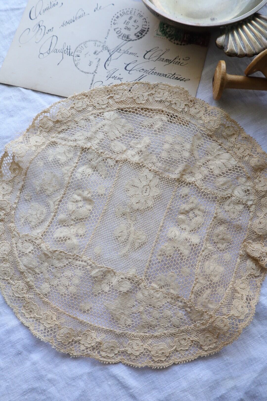 France製 アンティークレースドイリー B791 エクリュ