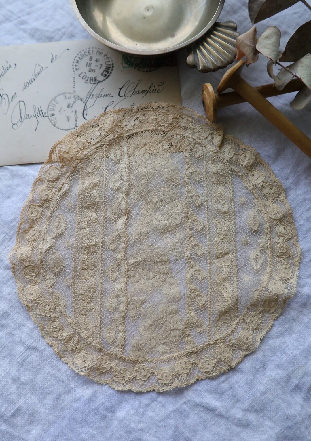 France製 アンティークレースドイリー B794 エクリュ