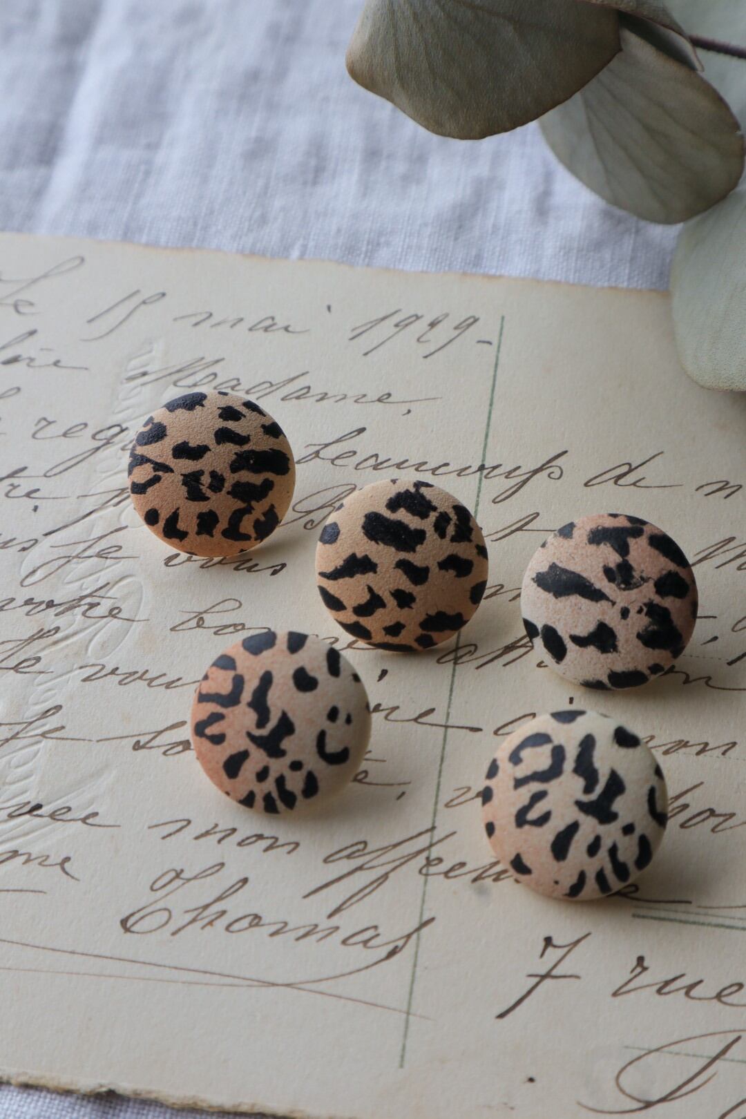 France製 5個 ヴィンテージボタン ヒョウ柄 A1685