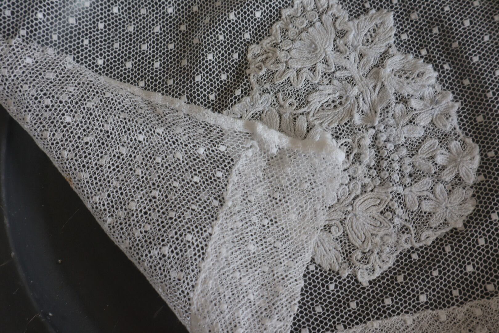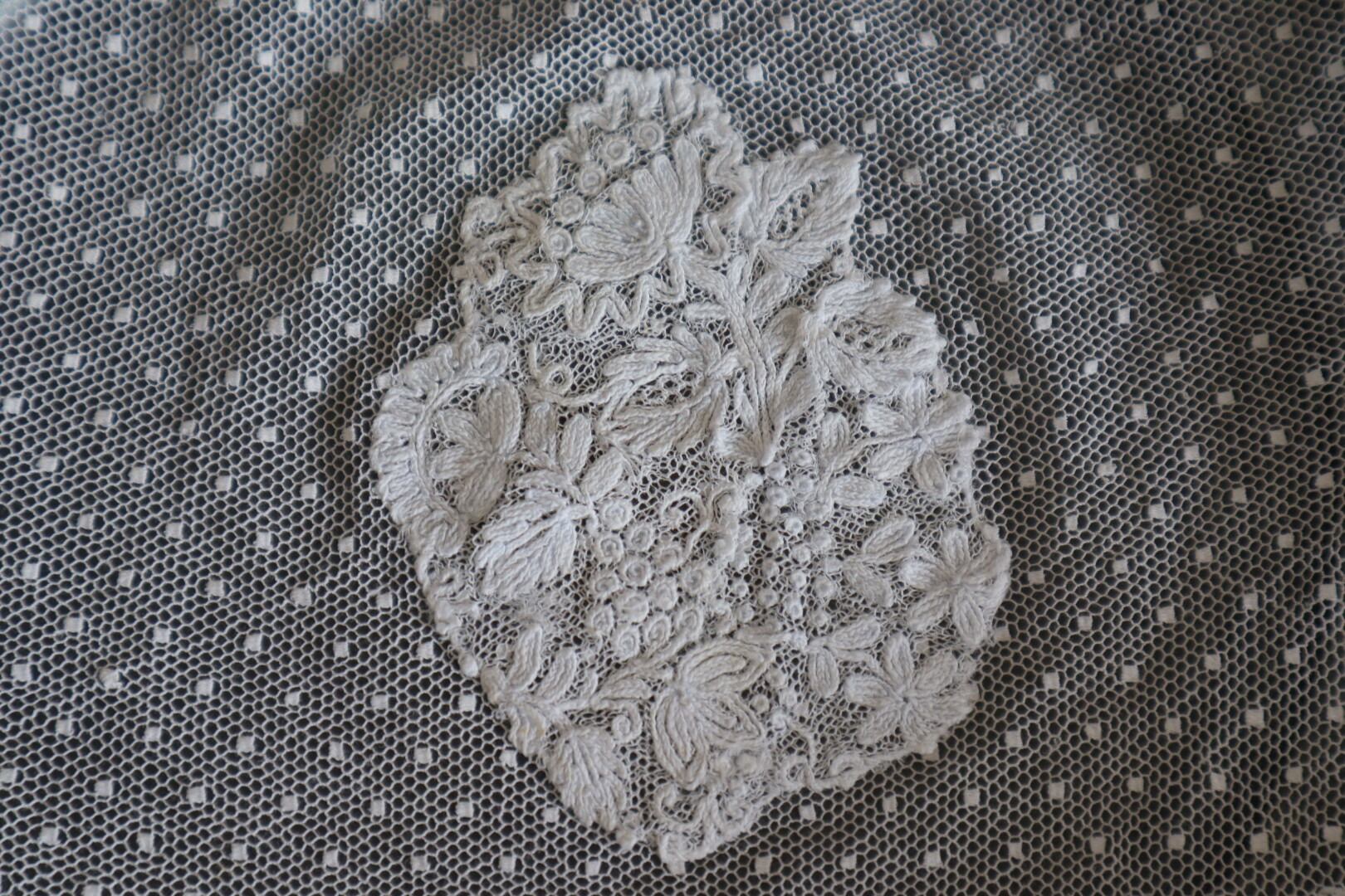 France製 アンティーク刺繍レース ボネの一部 B813