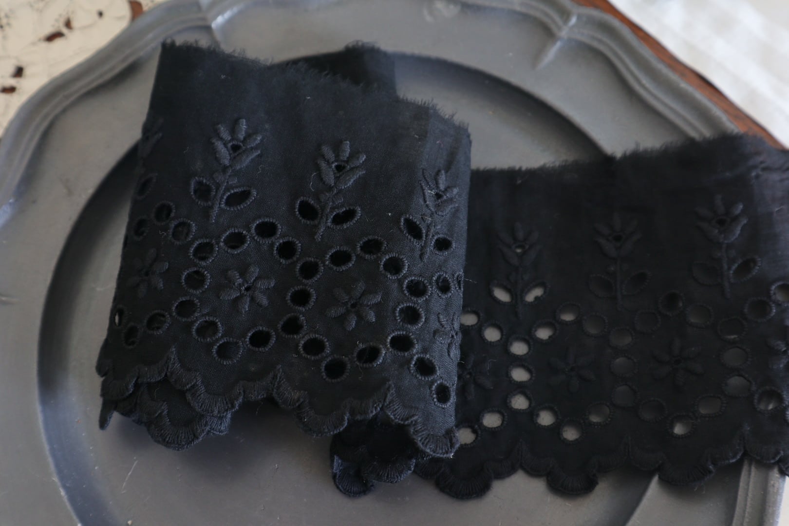 France製 70㎝ アンティーク刺繍レース C967 ブラック
