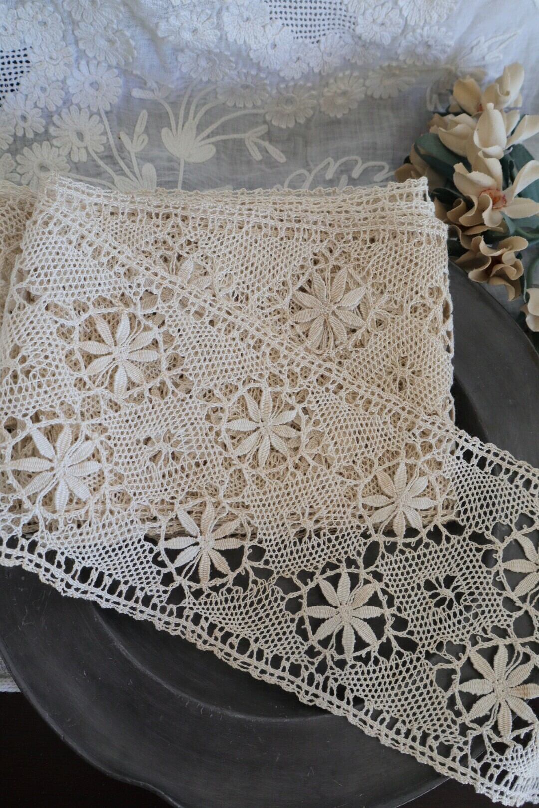 France製 60㎝ アンティーククロッシェレース C974 生成り