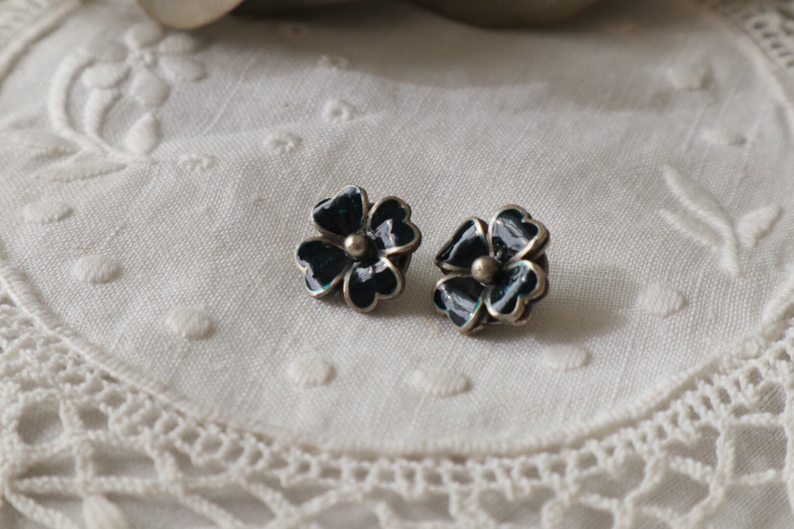 France製 15㎜ ヴィンテージメタルボタン 花形 A1537 ブラック