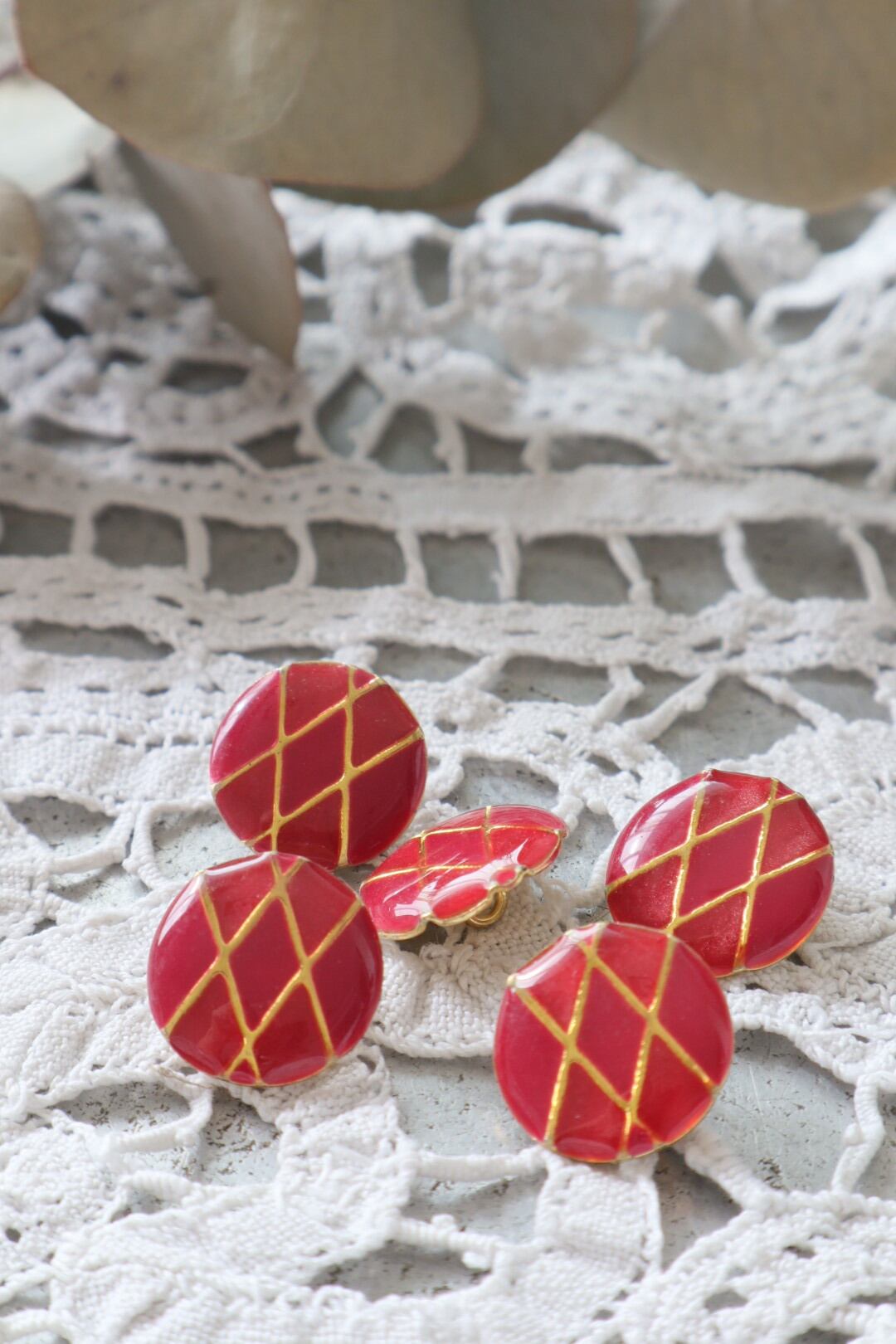 France製 15㎜ ヴィンテージボタン A1742 レッド