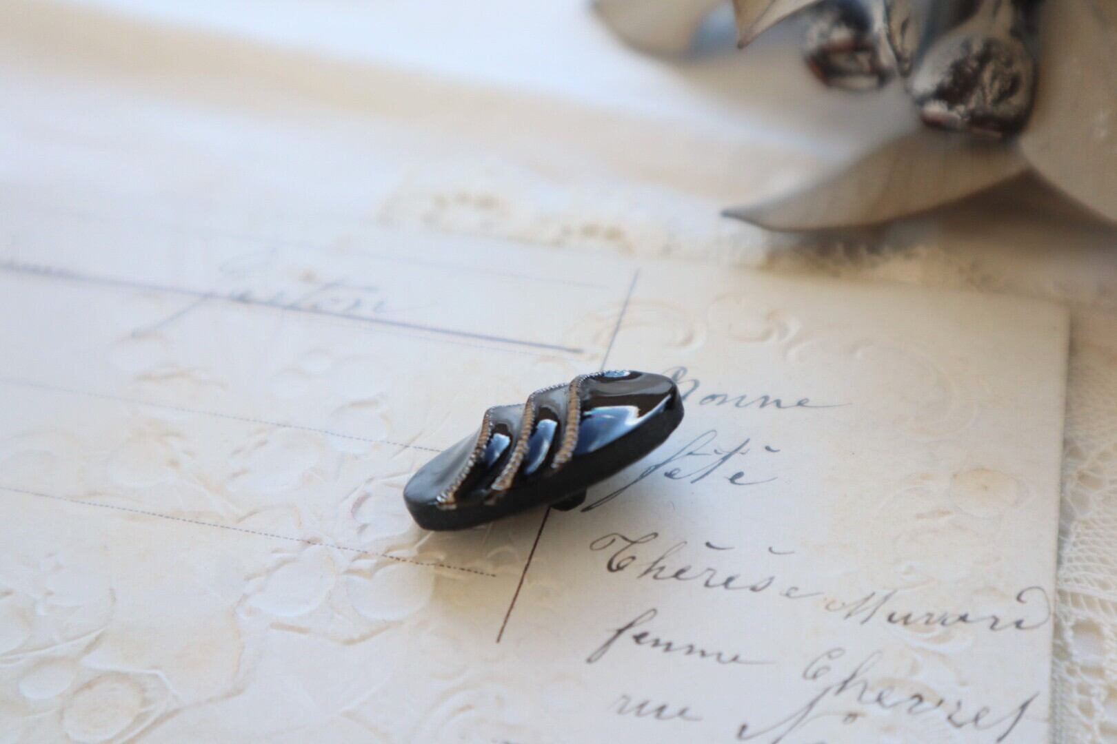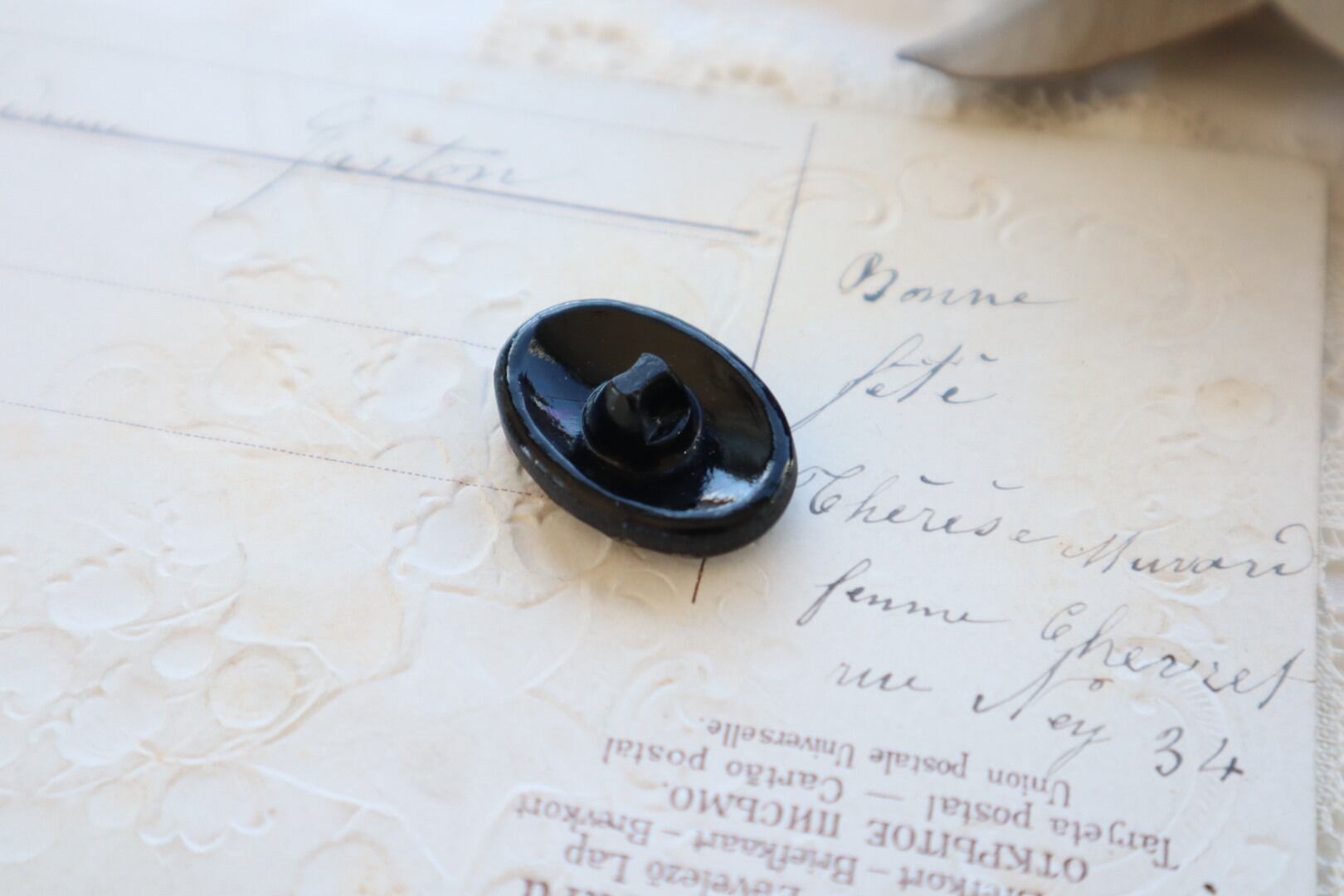 France製 26×18㎜ アンティークガラスボタン A1748 ブラック