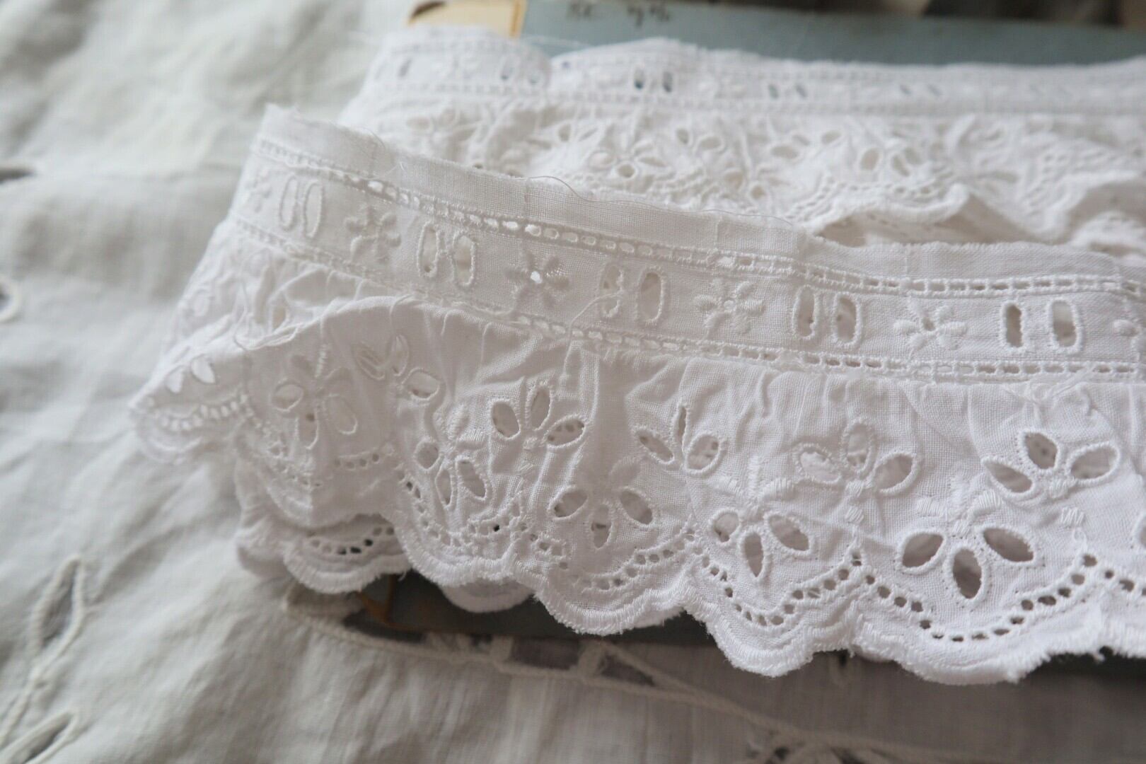 France製 60㎝ アンティーク カットワーク刺繍レース B850 ホワイト