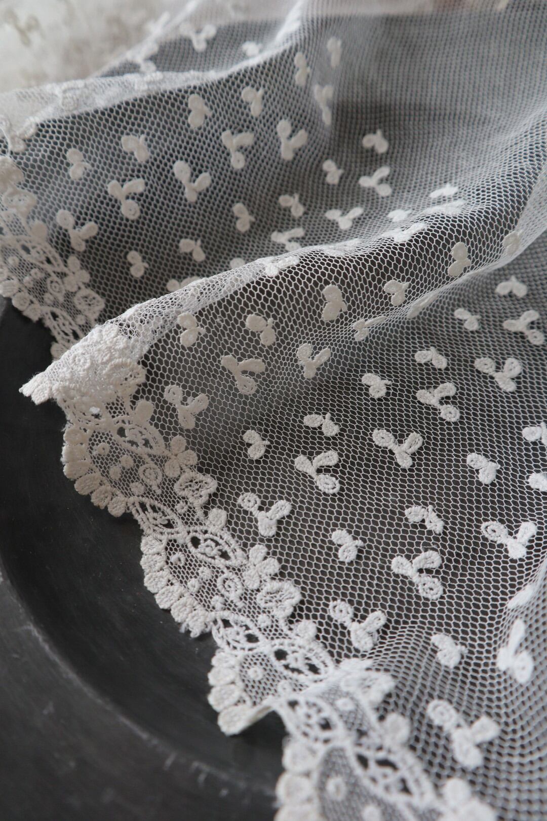 France製 30㎝ アンティーク刺繍レース C992 ホワイト
