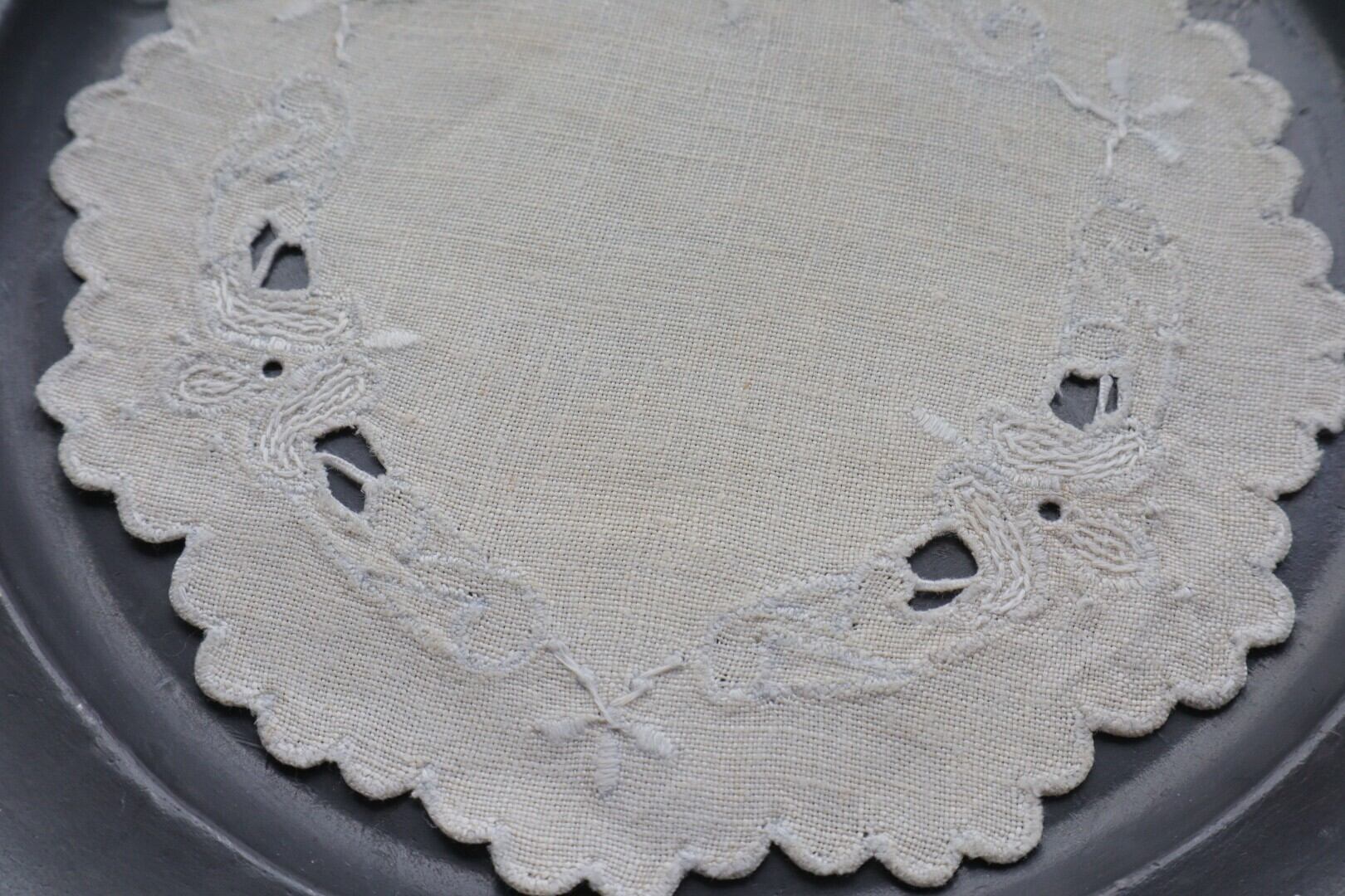France製 14㎝ アンティーク刺繍ドイリー B864 ナチュラル